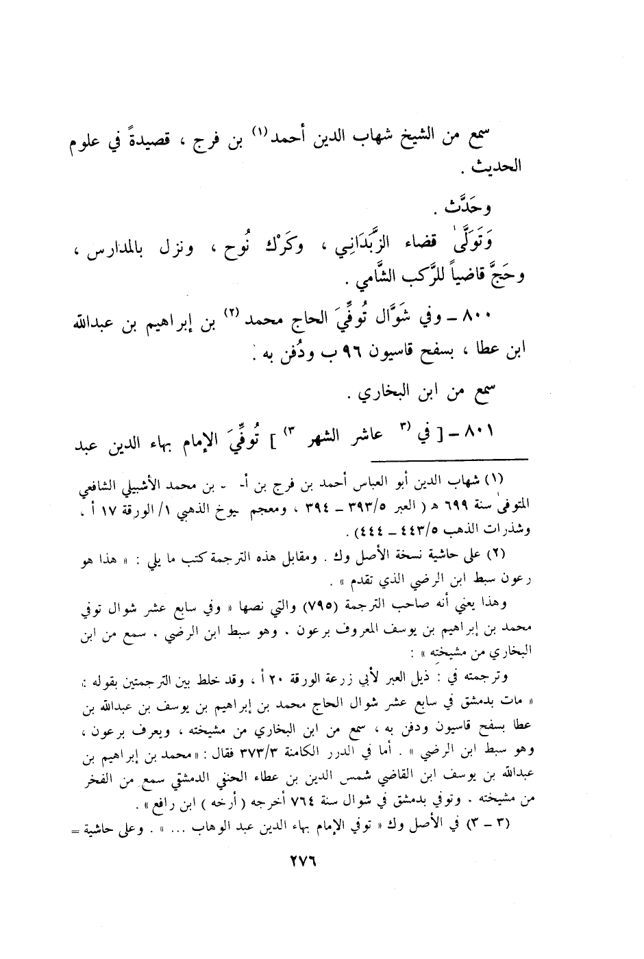 800 - وَفِي شَوَّال توفّي الْحَاج مُحَمَّد بن إِبْرَاهِيم بن عبد الله بن عطا بسفح قاسيون (96 ب) وَدفن بِهِ