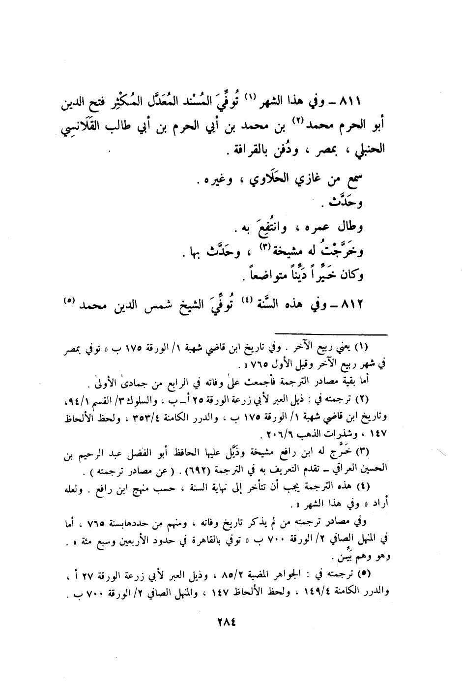 811 - وَفِي هَذَا الشَّهْر توفّي الْمسند الْمعدل المكثر فتح الدّين ابو الْحرم مُحَمَّد بن مُحَمَّد بن ابي الْحرم بن أبي طَالب القلانسي الْحَنْبَلِيّ بِمصْر وَدفن بالقرافة