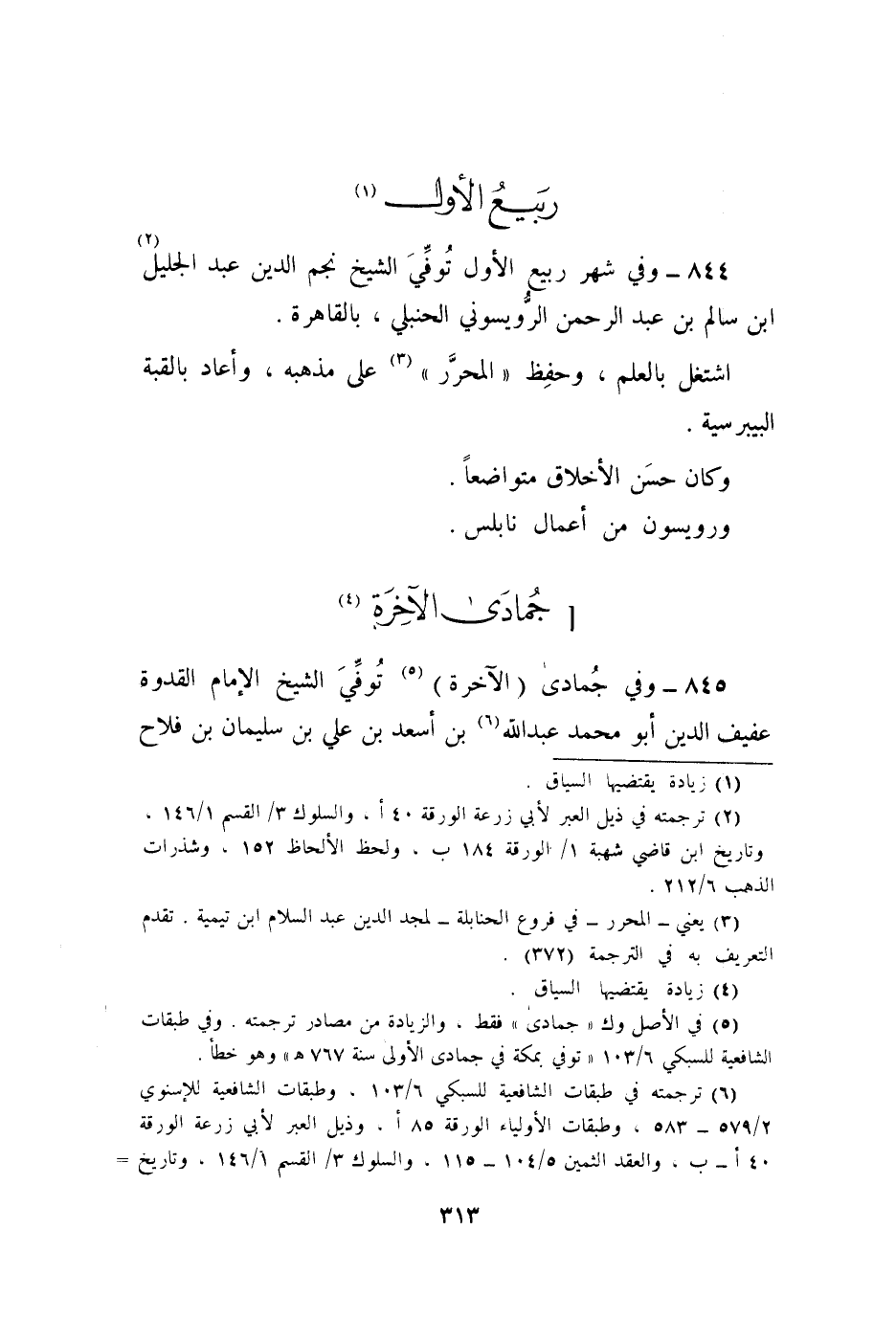 844 - وَفِي شهر ربيع الأول توفّي الشَّيْخ نجم الدّين عبد الْجَلِيل بن سَالم بن عبد الرَّحْمَن الرويسوني الْحَنْبَلِيّ بِالْقَاهِرَةِ
