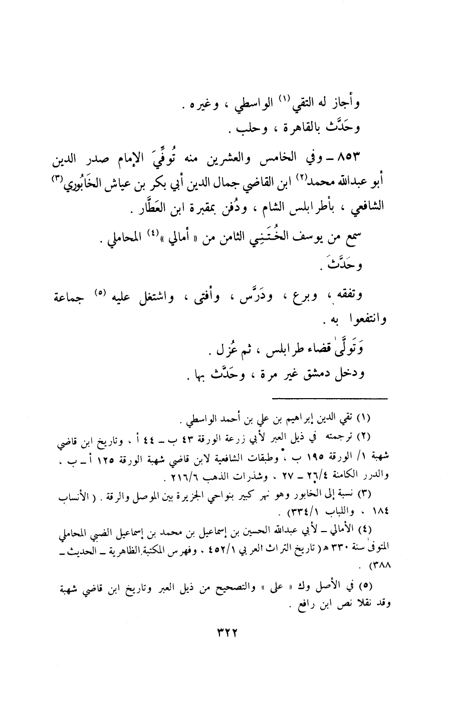 853 - وَفِي الْخَامِس وَالْعِشْرين مِنْهُ توفّي الإِمَام صدر الدّين أَبُو عبد الله مُحَمَّد ابْن القَاضِي جمال الدّين أبي بكر بن عَيَّاش الخابوري الشَّافِعِي بأطرابلس الشَّام وَدفن بمقبرة ابْن الْعَطَّار