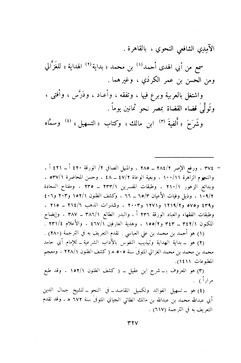 الْآمِدِيّ الشَّافِعِي النَّحْوِيّ بِالْقَاهِرَةِ