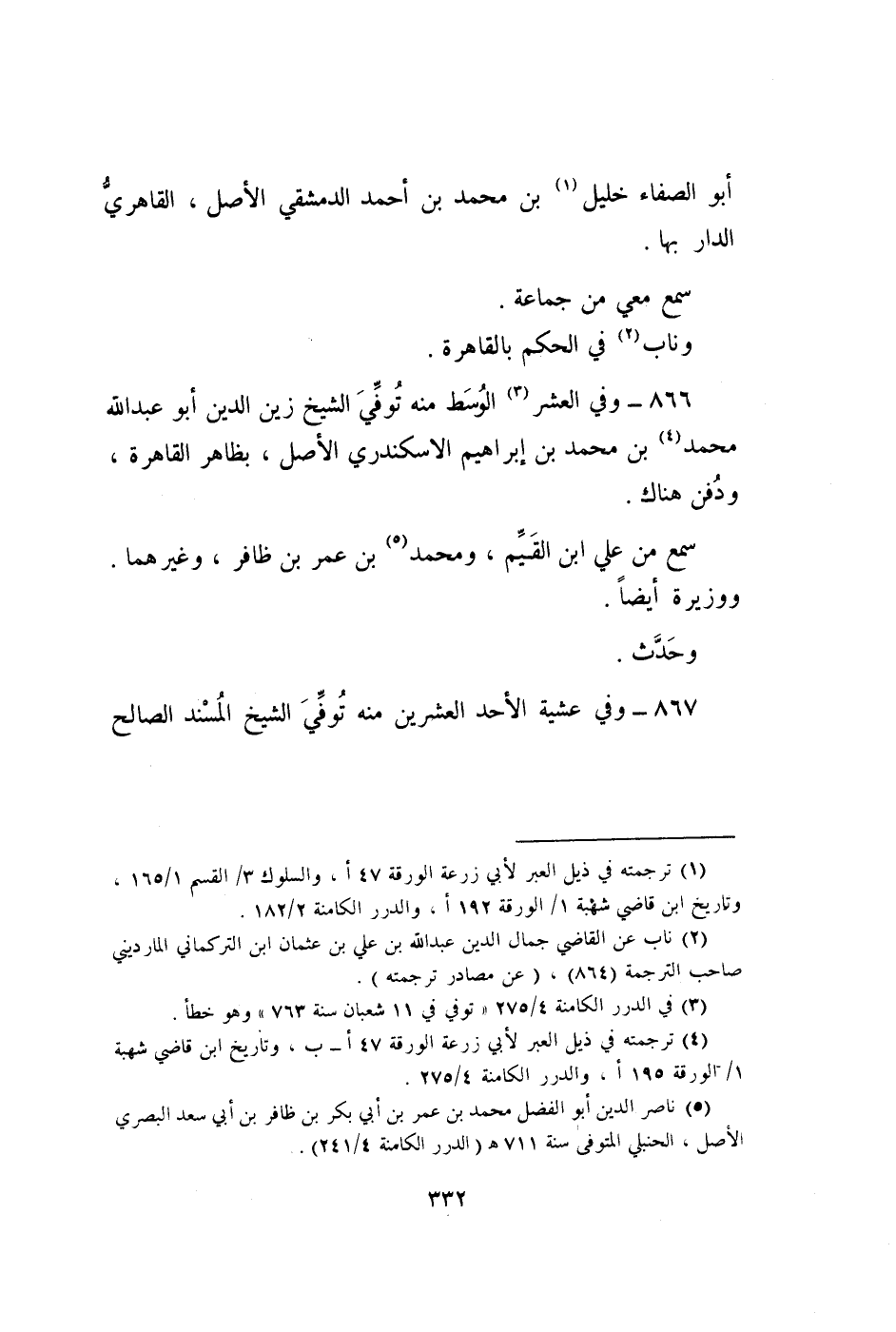 867 - وَفِي عَشِيَّة الْأَحَد الْعشْرين مِنْهُ توفّي الشَّيْخ الْمسند الصَّالح
