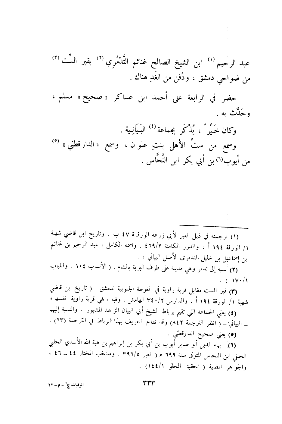 عبد الرَّحِيم ابْن الشَّيْخ الصَّالح غَنَائِم التدمري بِقَبْر السِّت من ضواحي دمشق وَدفن من الْغَد هُنَاكَ