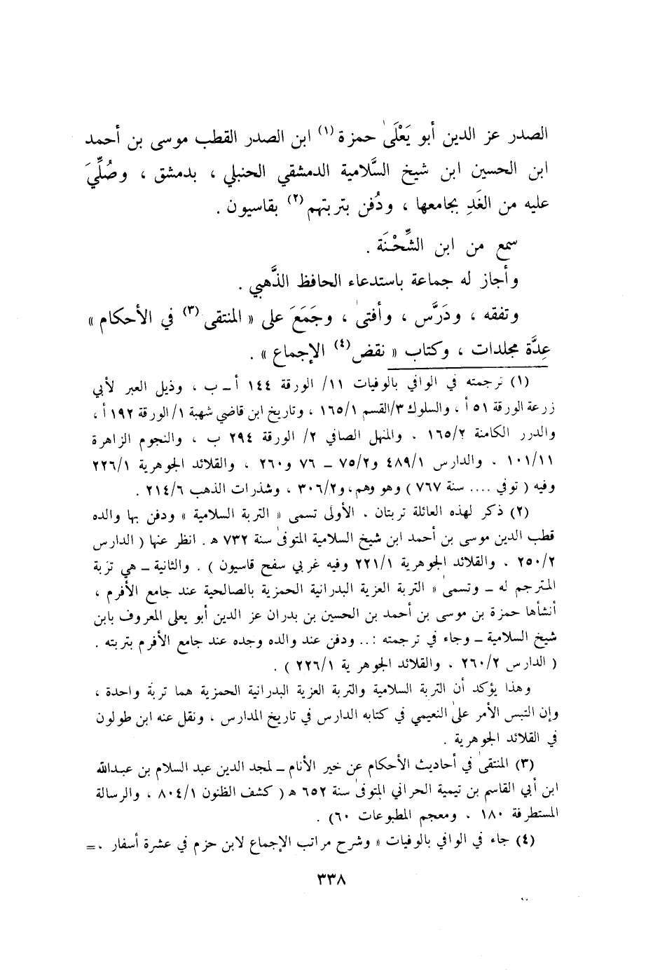 الصَّدْر عز الدّين أَبُو يعلى حَمْزَة ابْن الصَّدْر القطب مُوسَى بن أَحْمد بن الْحُسَيْن ابْن شيخ السلامية الدِّمَشْقِي الْحَنْبَلِيّ بِدِمَشْق وَصلي عَلَيْهِ من الْغَد بجامعها وَدفن بتربتهم بقاسيون