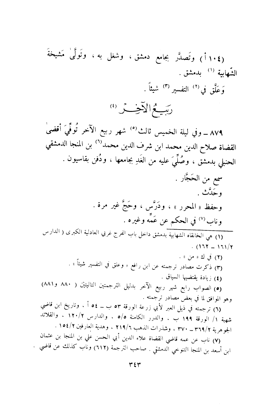 (104 أ) وتصدر بِجَامِع دمشق وشغل بِهِ وَتَوَلَّى مشيخة الشهابية بِدِمَشْق