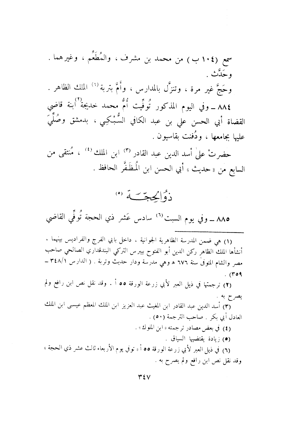 884 - وَفِي الْيَوْم الْمَذْكُور توفيت أم مُحَمَّد خَدِيجَة ابْنة قَاضِي الْقُضَاة أبي الْحسن عَليّ بن عبد الْكَافِي السُّبْكِيّ بِدِمَشْق وَصلي عَلَيْهَا بجامعها ودفنت بقاسيون