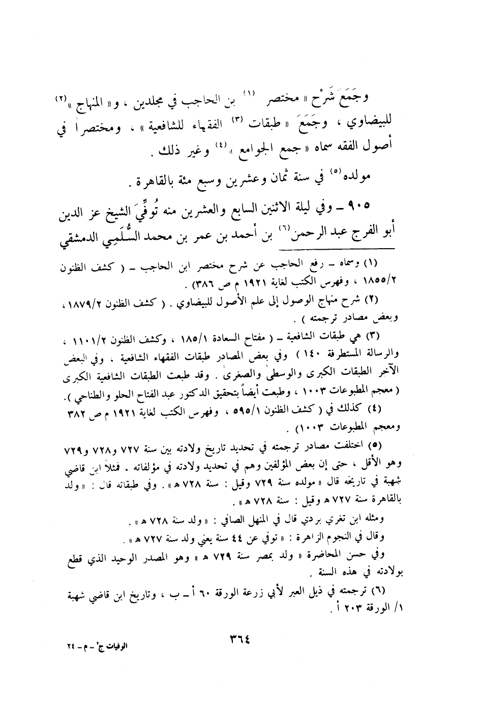 905 - وَفِي لَيْلَة الِاثْنَيْنِ السَّابِع وَالْعِشْرين مِنْهُ توفّي الشَّيْخ عز الدّين أَبُو الْفرج عبد الرَّحْمَن بن أَحْمد بن عمر بن مُحَمَّد السّلمِيّ الدِّمَشْقِي