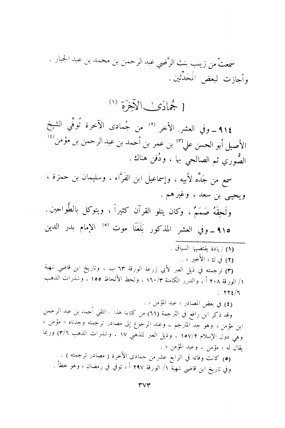 914 - وَفِي الْعشْر الْأُخَر من جُمَادَى الْآخِرَة توفّي الشَّيْخ الْأَصِيل أَبُو الْحسن عَليّ بن عمر بن أَحْمد بن عبد الرحمن بن مُؤمن الصُّورِي ثمَّ الصَّالِحِي بهَا وَدفن هُنَاكَ