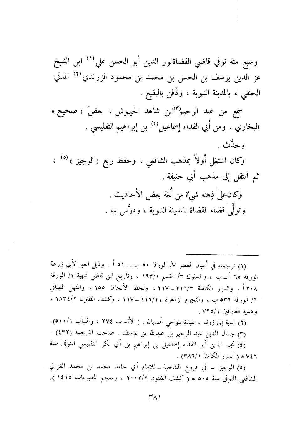وَسبع مئة توفّي قَاضِي الْقُضَاة نور الدّين أَبُو الْحسن عَليّ ابْن الشَّيْخ عز الدّين يُوسُف بن الْحسن بن مُحَمَّد بن مَحْمُود الزرندي الْمدنِي الْحَنَفِيّ بِالْمَدِينَةِ النَّبَوِيَّة وَدفن بِالبَقِيعِ