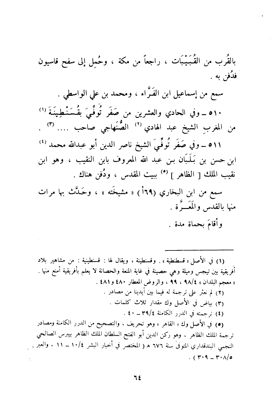 510 - وَفِي الْحَادِي وَالْعِشْرين من صفر توفّي بقسنطينة من الْمغرب الشَّيْخ عبد الْهَادِي الصنهاجي صَاحب