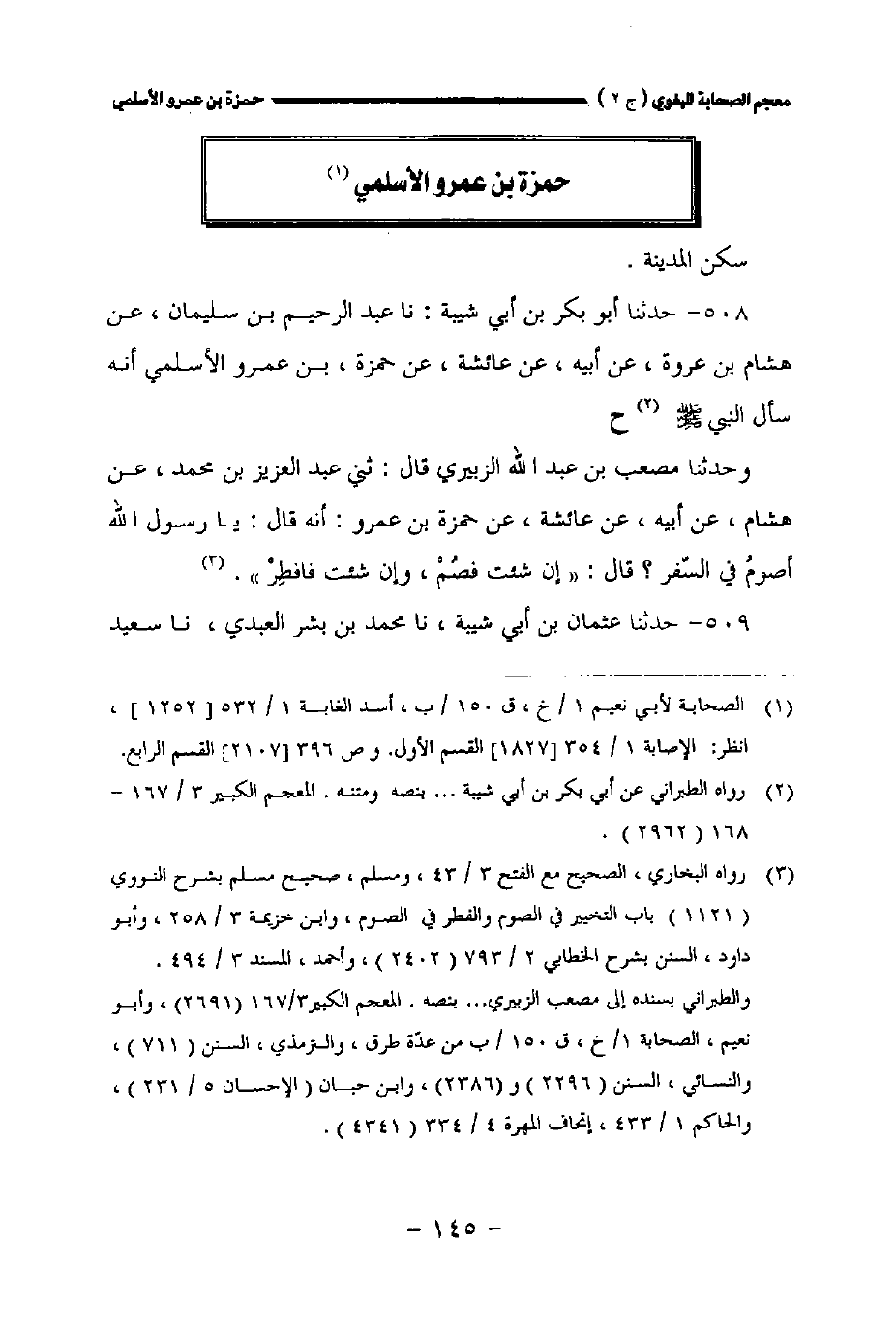٥٠٨ - حدثنا أبو بكر بن أبي شيبة: نا عبد الرحيم بن سليمان عن هشام بن عروة عن أبيه عن عائشة عن حمزة بن عمرو الأسلمي أنه سأل النبي صلى الله عليه وسلم ح
