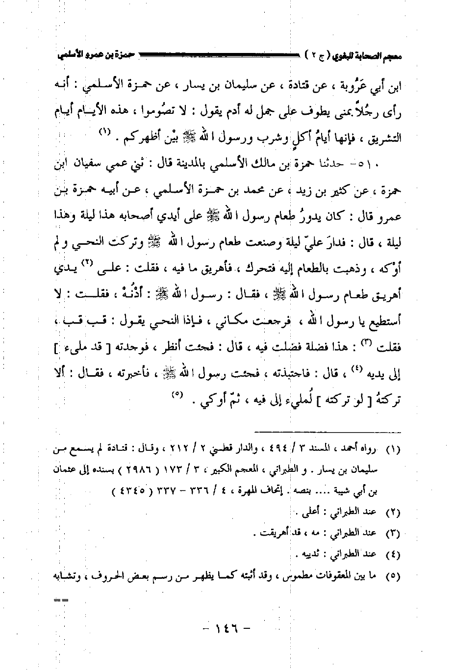 بن أبي عروبة عن قتادة عن سليمان بن يسار عن حمزة الأسلمي أنه رأى رجلا بمنى يطوف على جمل له أدم يقول: لا تصوموا هذه الأيام أيام التشريق فإنها أيام أكل وشرب ورسول الله صلى الله عليه وسلم بين أظهركم.