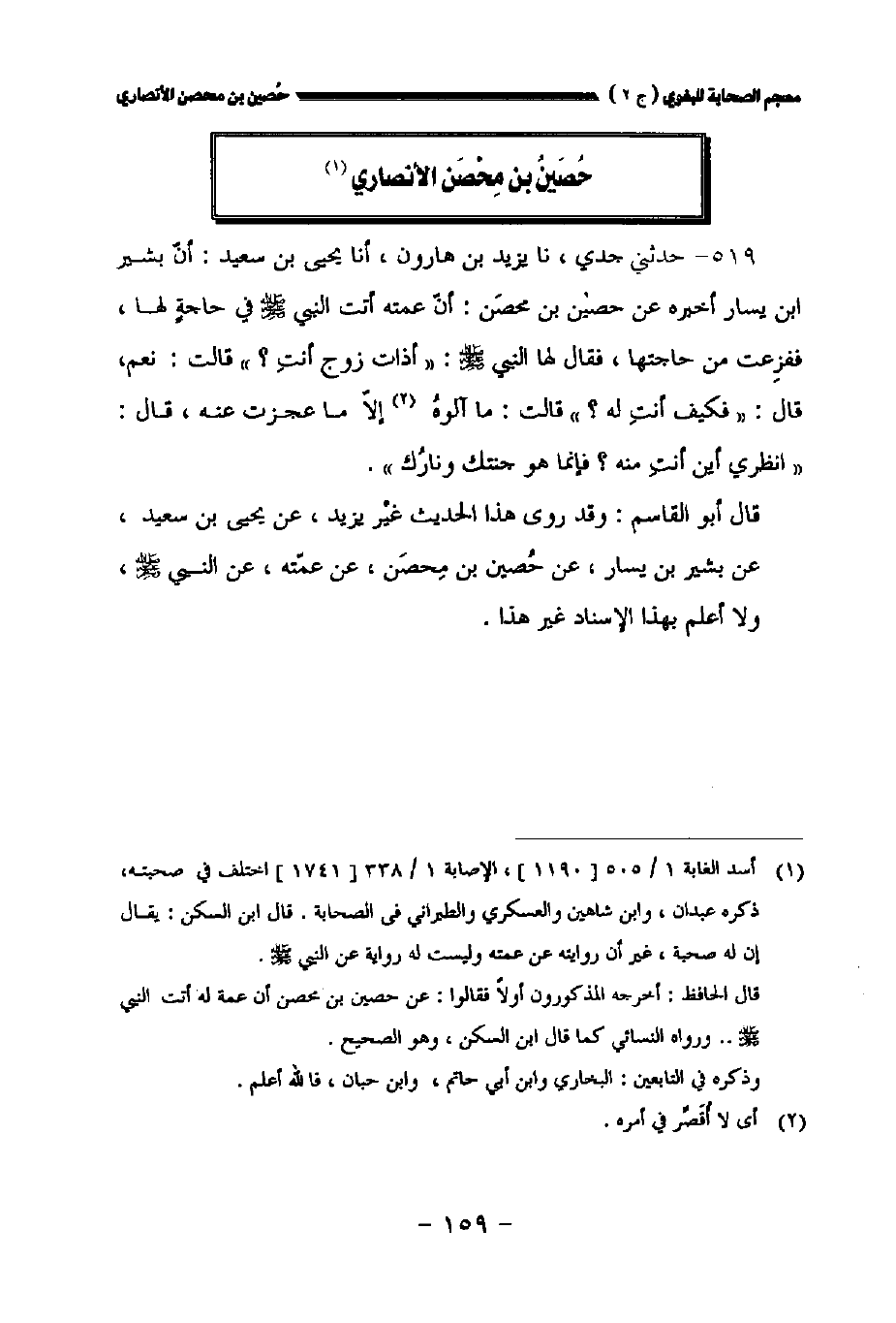 قال أبو القاسم: وقد روى هذا الحديث غير يزيد عن يحيى بن سعيد عن بشير بن يسار عن حصين بن محصن عن عمته عن النبي صلى الله عليه وسلم ولا أعلم بهذا الإسناد غير هذا.