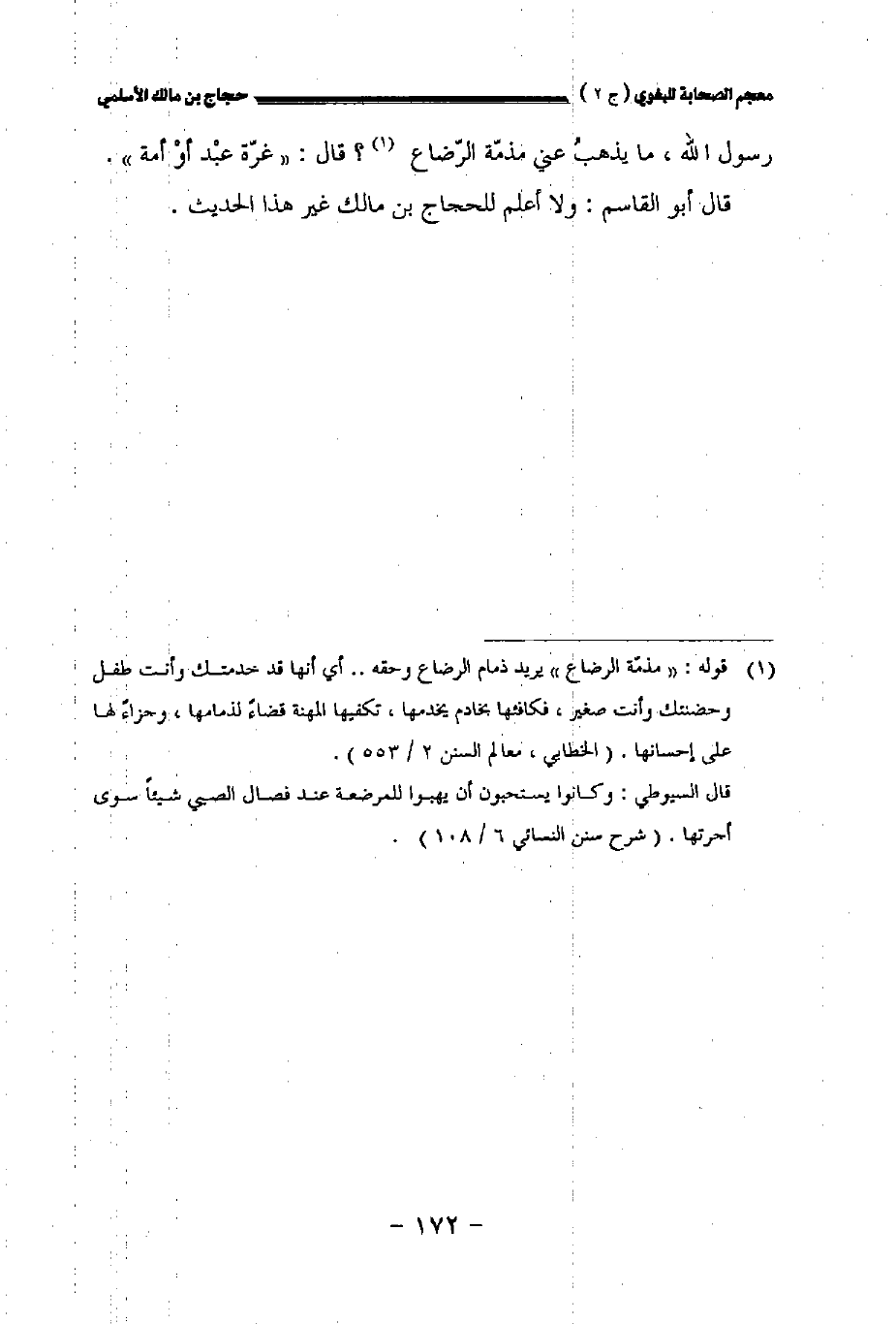 رسول الله ما يذهب عني مذمة الرضاع؟ قال: " غرة عبد أو أمة.