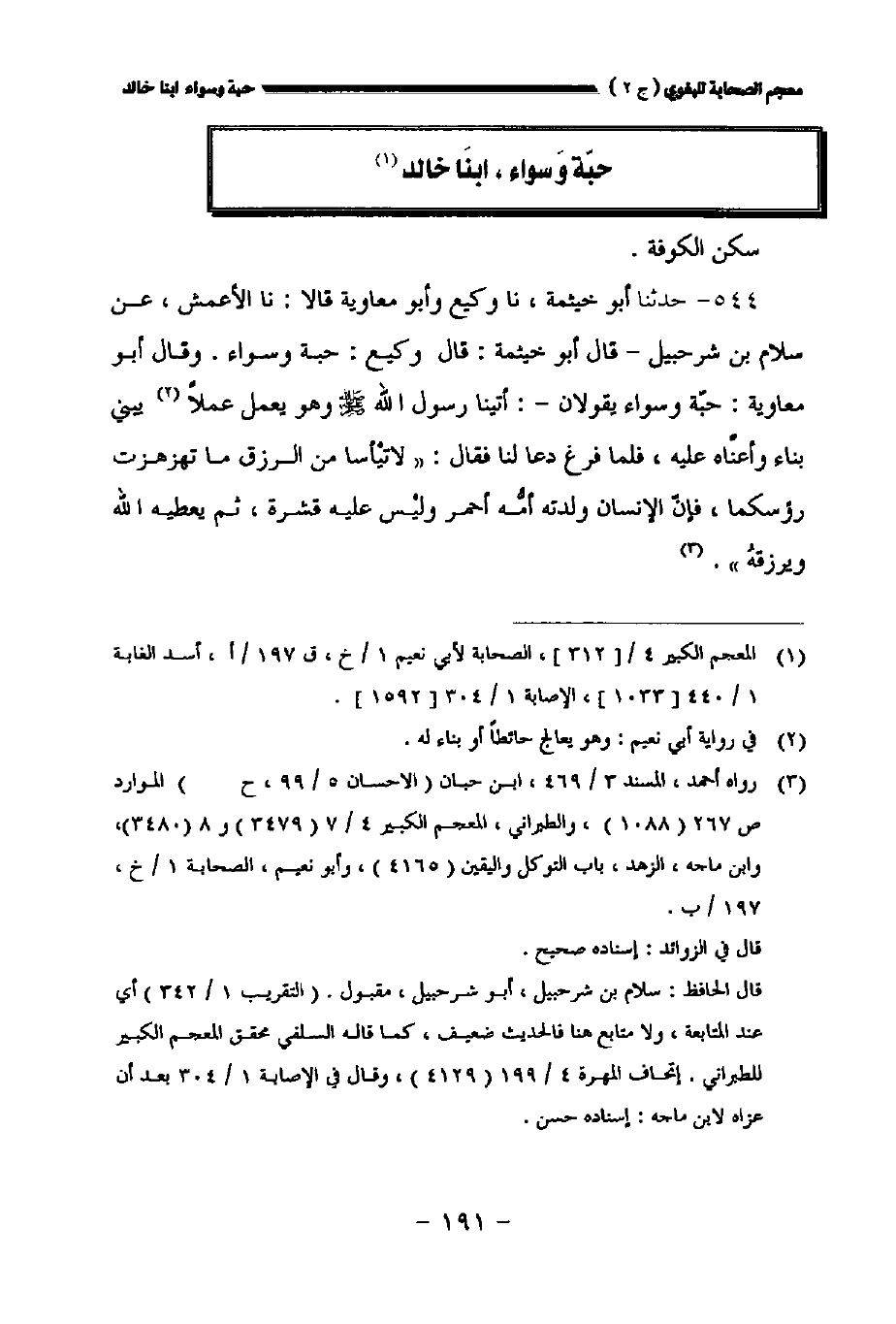 ٥٤٤ - حدثنا أبو خيثمة نا وكيع وأبو معاوية قالا: نا الأعمش عن سلام بن شرحبيل قال أبو خيثمة: قال وكيع: حبة وسواء. وقال أبو معاوية: حبة وسواء يقولان: أتينا رسول الله صلى الله عليه وسلم وهو يعمل عملا يبني بناء وأعناه عليه فلما فرغ دعا لنا فقال: " لا تيأسا من الرزق ما تهزهزت رؤسكما فإن الإنسان ولدته أمه أحمر وليس عليه قشرة ثم يعطيه الله ويرزقه ".