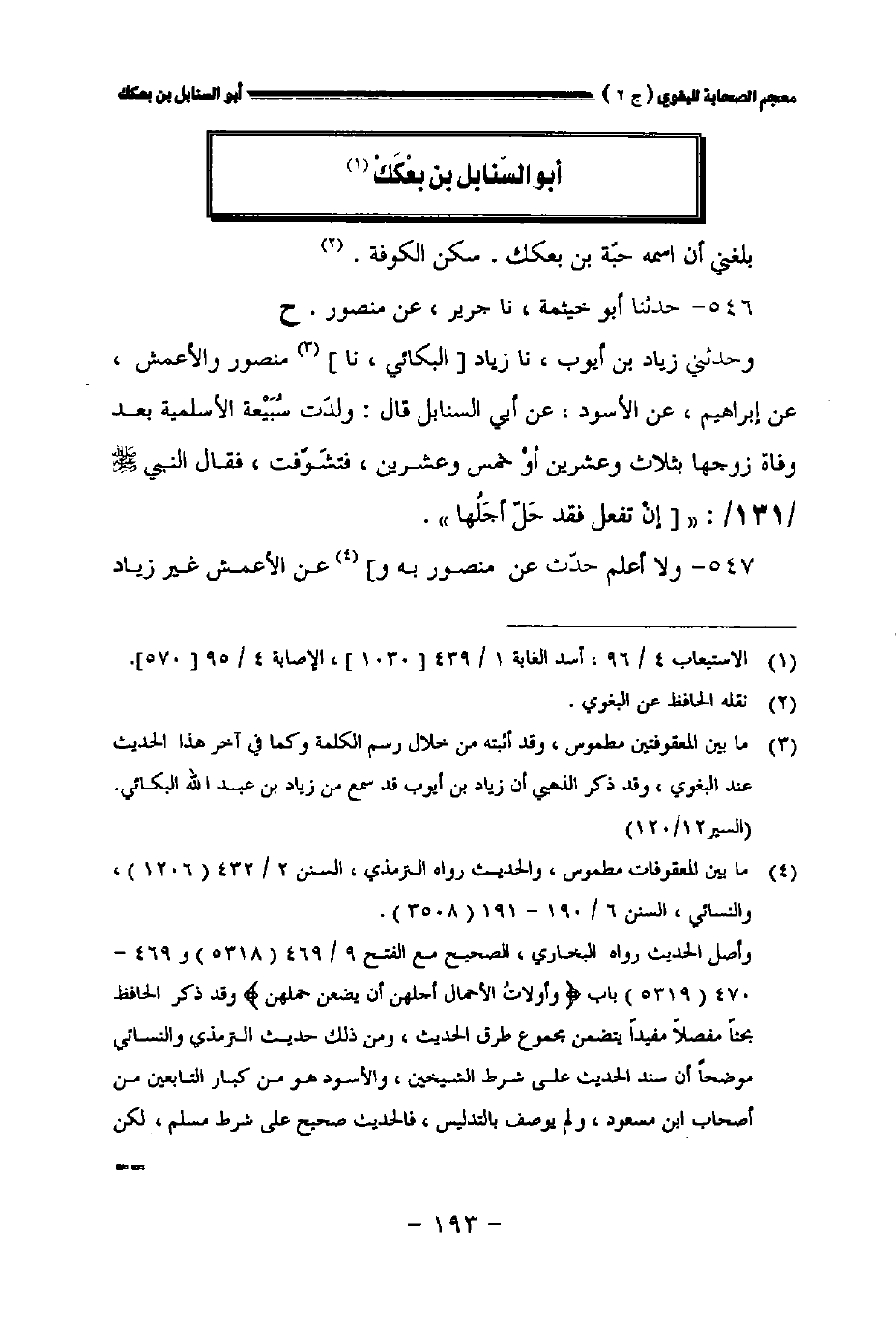 وحدثني زياد بن أيوب نا زياد [البكائي حدثنا] منصور والأعمش عن إبراهيم عن الأسود عن أبي السنابل قال: ولدت سبيعة الأسلمية بعد وفاة زوجها بثلاث وعشرين أو خمس وعشرين فتشوفت فقال النبي صلى الله عليه وسلم: // ١٣١ // " [إن تفعل فقد حل أجلها.