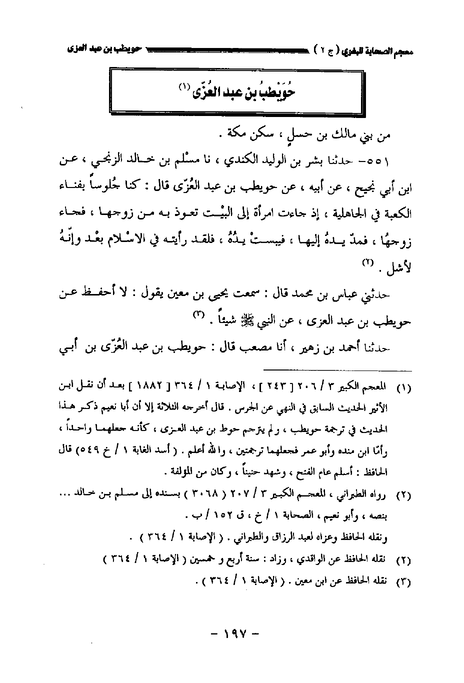 حدثنا أحمد بن زهير أنا مصعب قال: حويطب بن عبد العزى بن أبي