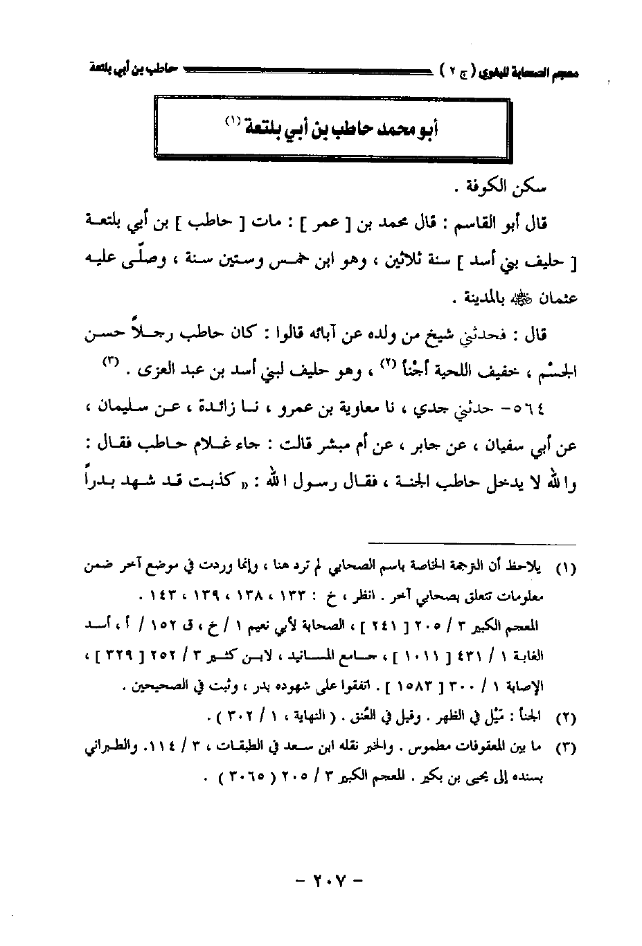 ٥٦٤ - حدثني جدي نا معاوية بن عمرو نا زائدة عن سليمان عن أبي سفيان عن جابر عن أم مبشر قالت: جاء غلام حاطب فقال: والله لا يدخل حاطب الجنة فقال رسول الله صلى الله عليه وسلم:" كذبت قد شهد بدرا