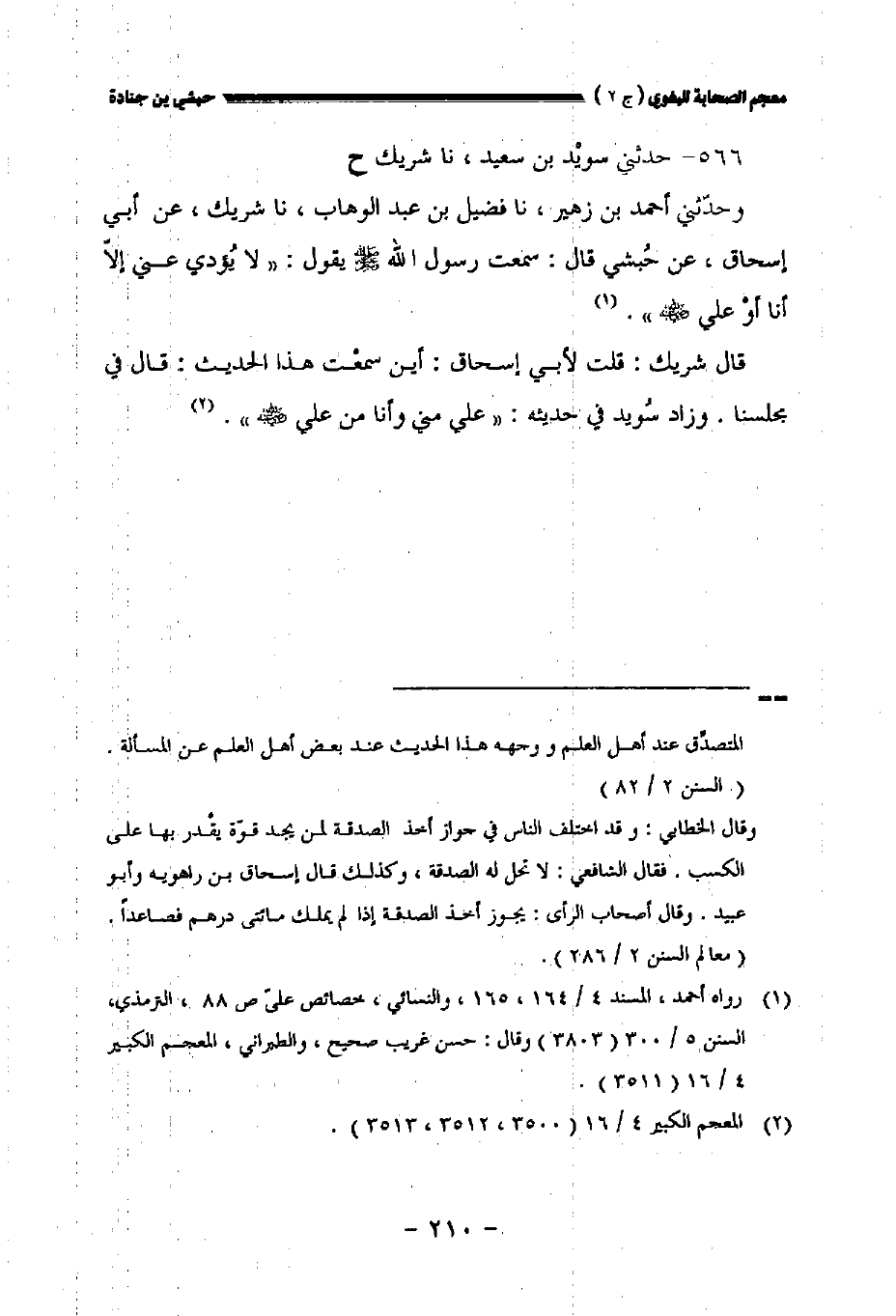 قال شريك: قلت لأبي إسحاق: أين سمعت هذا الحديث: قال في مجلسنا وزاد سويد في حديثه: " على مني وأنا من علي رضي الله عنه.