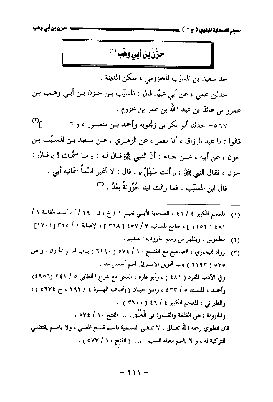 ٥٦٧ - حدثنا أبو بكر بن زنجويه وأحمد بن منصور و [] قالوا: نا عبد الرزاق أخبرنا معمر عن الزهري عن سعيد بن المسيب بن حزن عن أبيه عن جده: أن النبي صلى الله عليه وسلم قال له: " ما اسمك؟ " قال: حزن فقال النبي صلى الله عليه وسلم: " أنت سهل ". قال: لا أغير اسما سمانيه أبي.