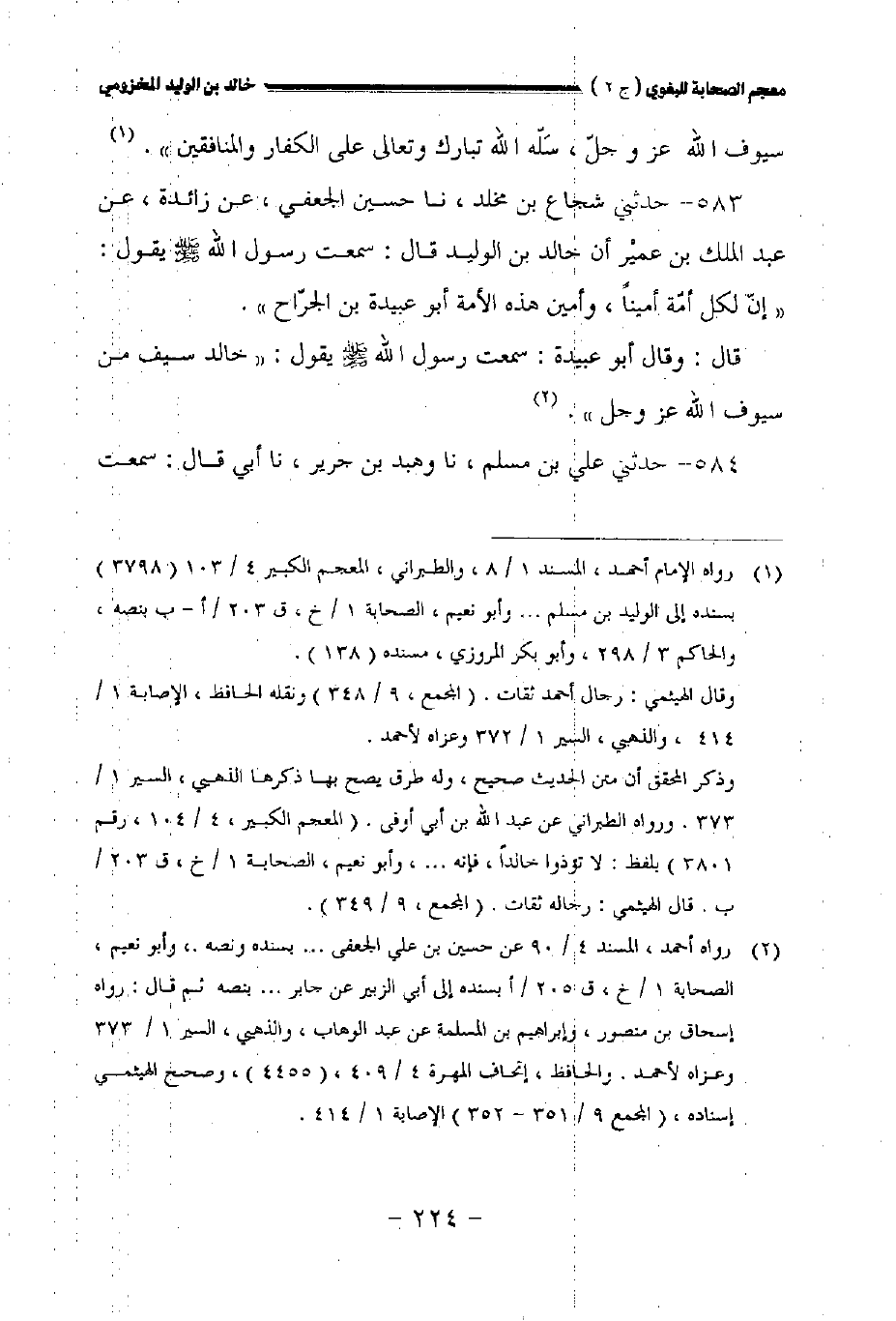 ٥٨٣ - حدثني شجاع بن مخلد نا حسين الجعفي عن زائدة عن عبد الملك بن عمير أن خالد بن الوليد قال: سمعت رسول الله صلى الله عليه وسلم يقول: " إن لكل أمة أمينا وأمين هذه الأمة أبو عبيدة بن الجراح.