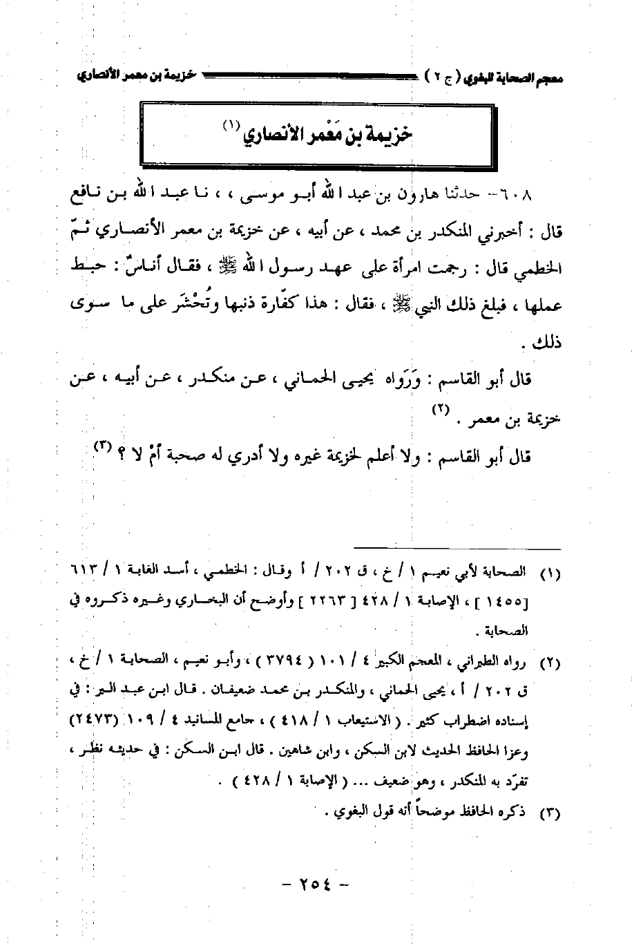 قال أبو القاسم: ورواه يحيى الحماني عن منكدر عن أبيه عن خزيمة بن معمر.