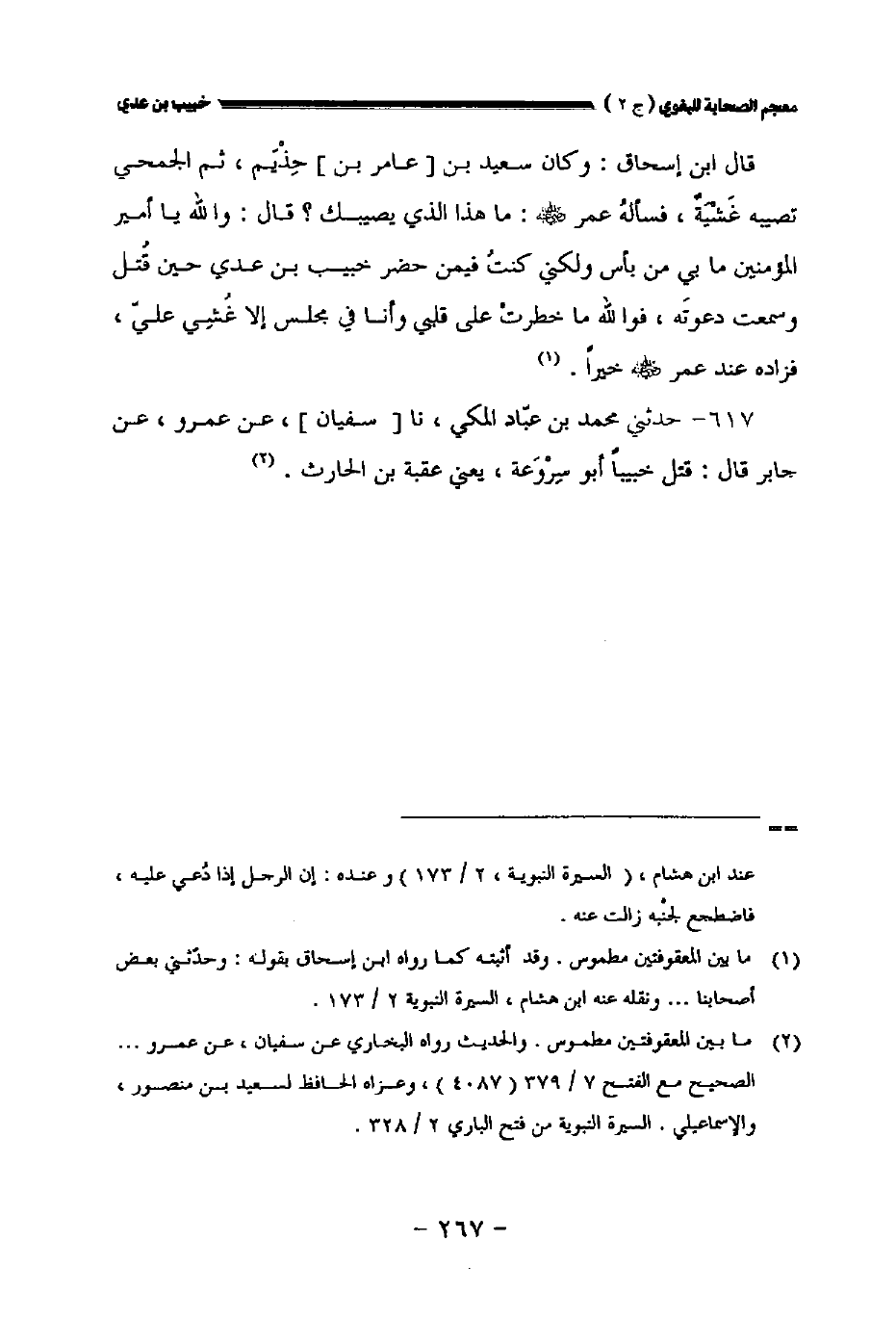 ٦١٧ - حدثني محمد بن عباد المكي نا [سفيان] عن عمرو عن جابر قال: قتل خبيبا أبو سروعة يعني عقبة بن الحارث.
