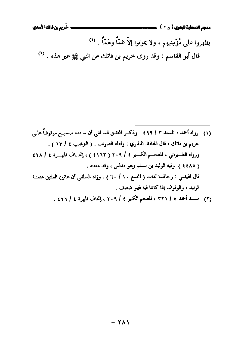 قال أبو القاسم: وقد روى خريم بن فاتك عن النبي صلى الله عليه وسلم غير هذه.