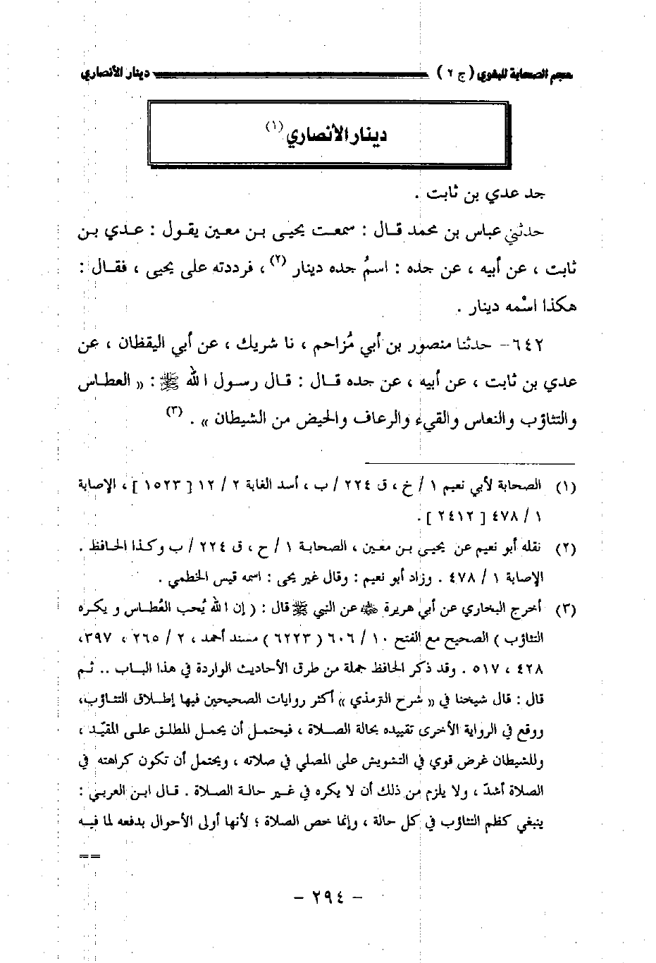 حدثني عباس بن محمد قال: سمعت يحيى بن معين يقول: عدي بن ثابت عن أبيه عن جده اسم جده دينار فرددته على يحيى فقال: هكذا اسمه دينار.