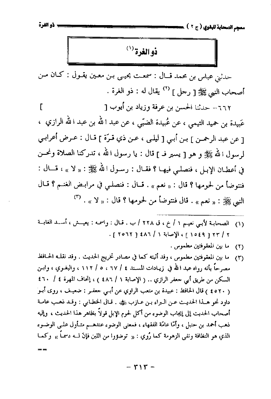 حدثني عباس بن محمد قال: سمعت يحيى بن معين يقول: كان من أصحاب النبي صلى الله عليه وسلم [رجل] يقال له: ذو الغرة.