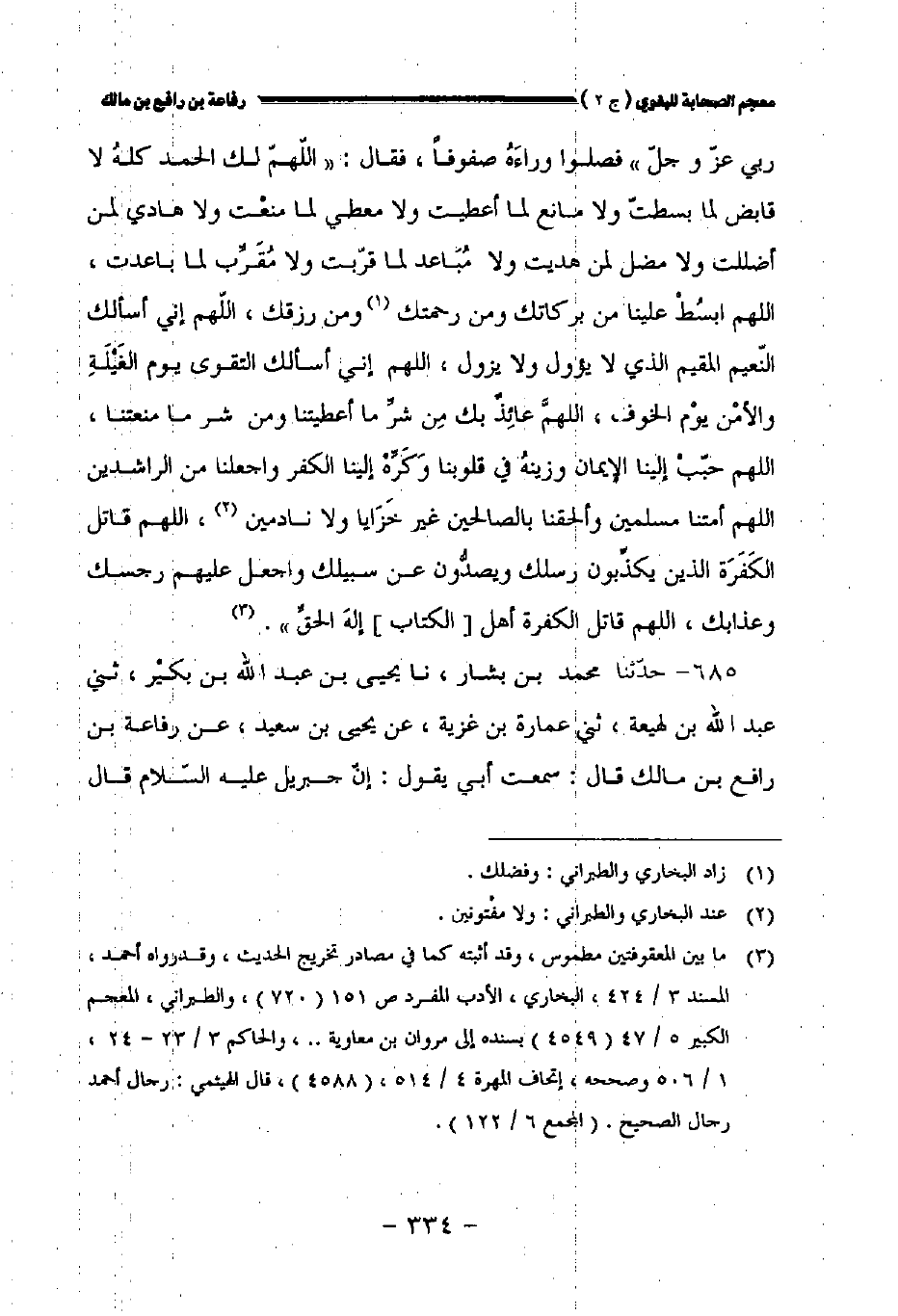 ٦٨٥ - حدثنا محمد بن بشار نا يحيى بن عبد الله بن بكير ثني عبد الله بن لهيعة حدثني عمارة بن غزية عن يحيى بن سعيد عن رفاعة بن رافع بن مالك قال سمعت أبي يقول: إن جبريل عليه السلام قال