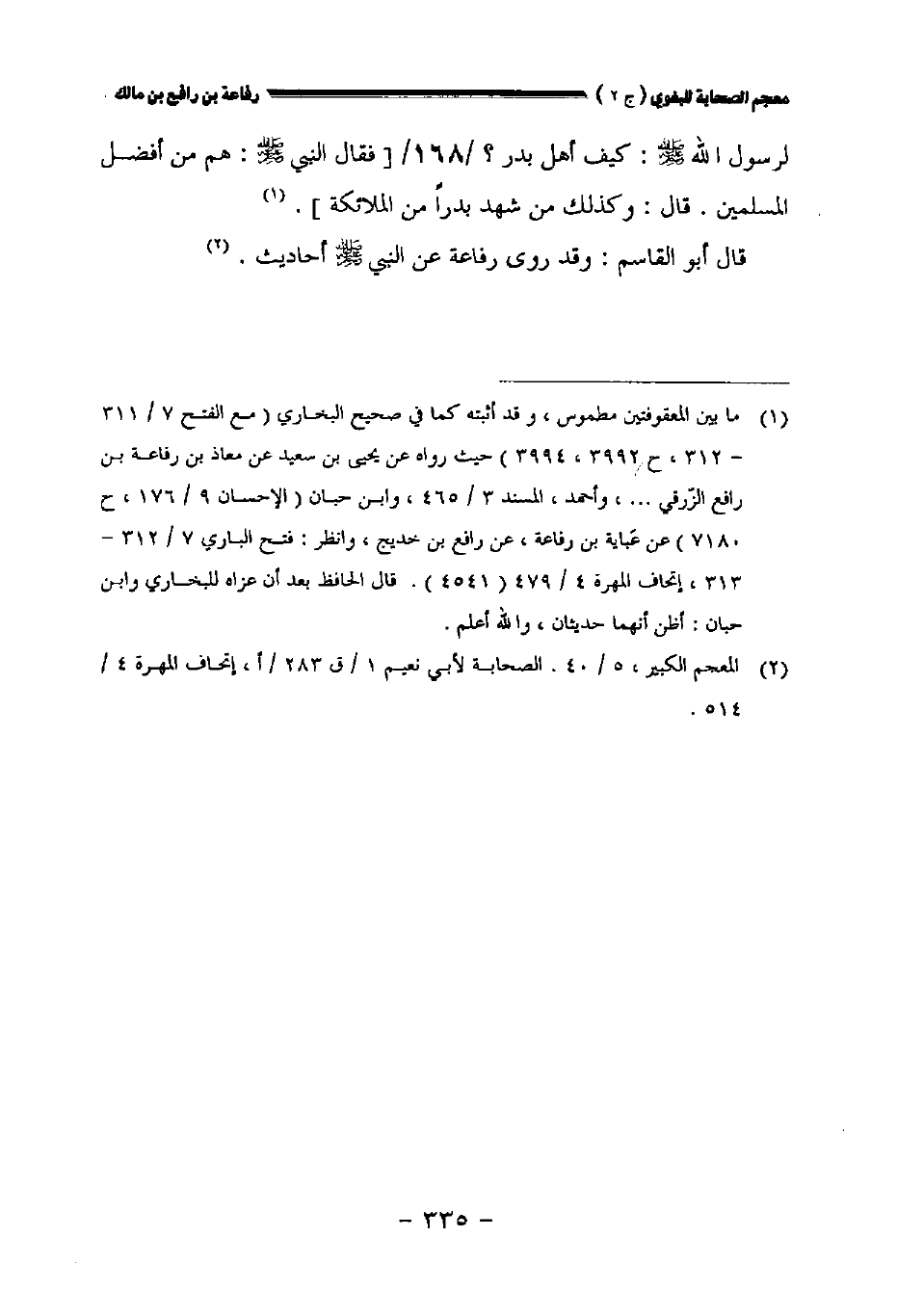 لرسول الله صلى الله عليه وسلم: كيف أهل بدر //١٦٨// [فقال النبي صلى الله عليه وسلم: هم من أفضل المسلمين قال: وكذلك من شهد بدرا من الملائكة].