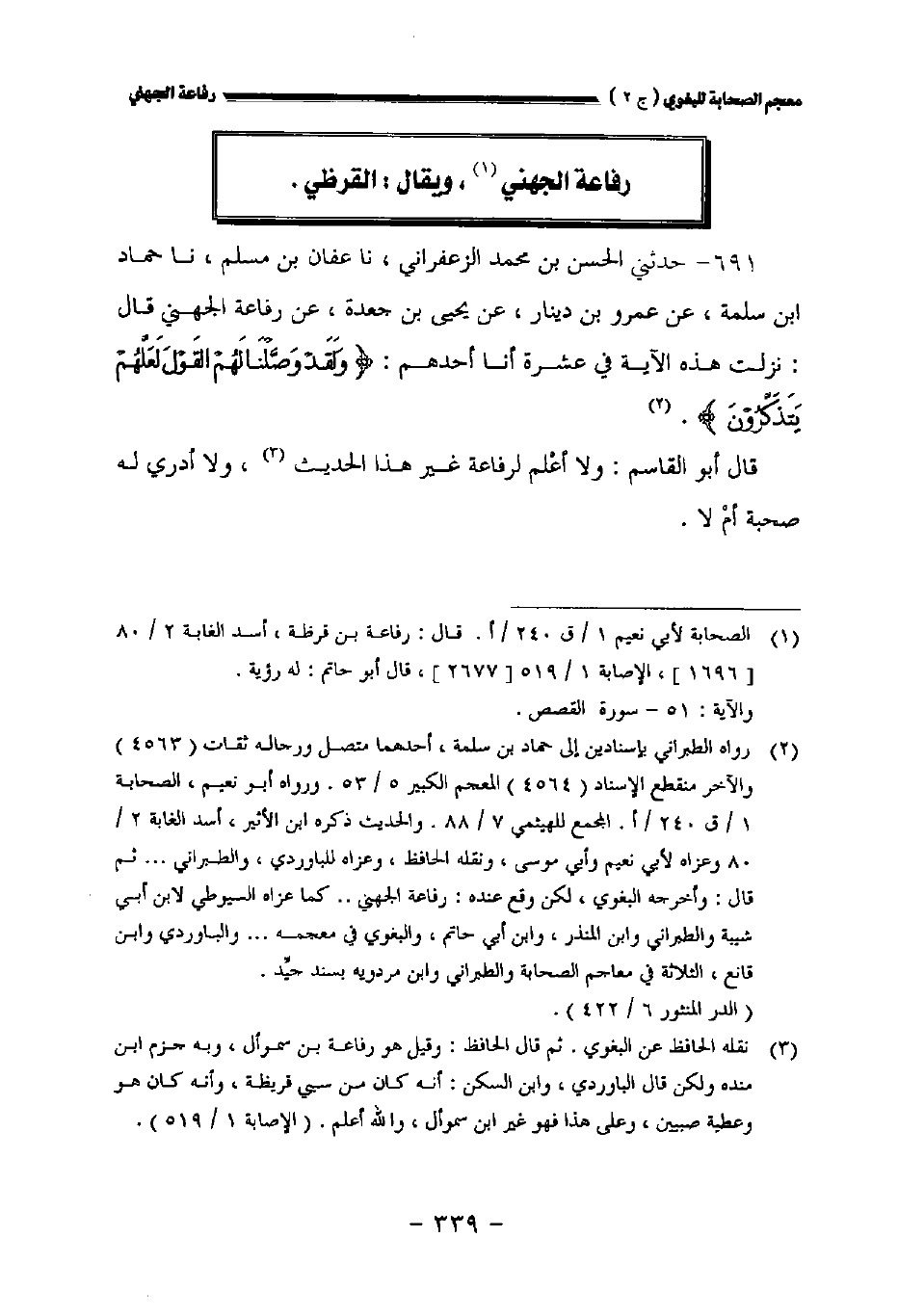 ٦٩١ - حدثني الحسن بن محمد الزعفراني نا عفان بن مسلم نا حماد بن سلمة عن عمرو بن دينار عن يحيى بن جعدة عن رفاعة الجهني قال: نزلت هذه الآية في عشرة أنا أحدهم {ولقد وصلنا لهم القول لعلهم يتذكرون}.