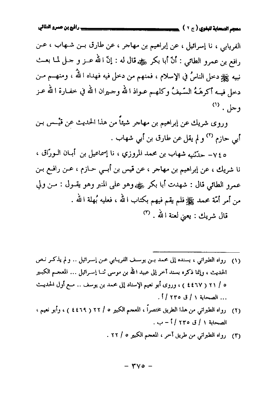 ٧٤٥ - حدثنيه شهاب بن محمد المروزي نا إسماعيل بن أبان الوراق نا شريك عن إبراهيم بن مهاجر عن قيس بن أبي حازم عن رافع بن عمرو الطائي قال: شهدت أبا بكر رضي الله عنه وهو على المنبر وهو يقول: من ولي من أمر أمة محمد صلى الله عليه وسلم فلم يقم فيهم بكتاب الله فعليه بهلة الله.