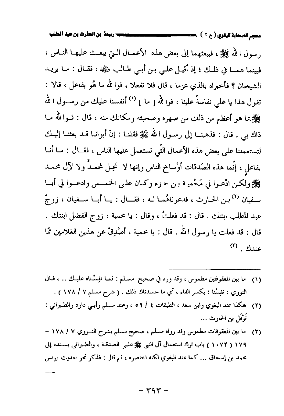 قال: فذهبنا إلى رسول الله صلى الله عليه وسلم فقلنا: إن أبوانا قد بعثنا إليك لتستعملنا على بعض هذه الأعمال التي تستعمل عليها الناس فقال: ما أنا بفاعل إنما هذه الصدقات أوساخ الناس وإنها لا تحل لمحمد ولا لآل محمد صلى الله عليه وسلم ولكن ادعوا لي محمية بن جزء وكان على الخمس وادعوا لي أبا سفيان بن الحارث فدعوناهما له فقال: ياأبا سفيان زوج عبد المطلب ابنتك. قال: قد فعلت وقال: يامحمية زوج الفضل ابنتك. قال: قد فعلت يارسول الله. قال: يامحمية أصدق عن هذين الغلامين مما عندك.