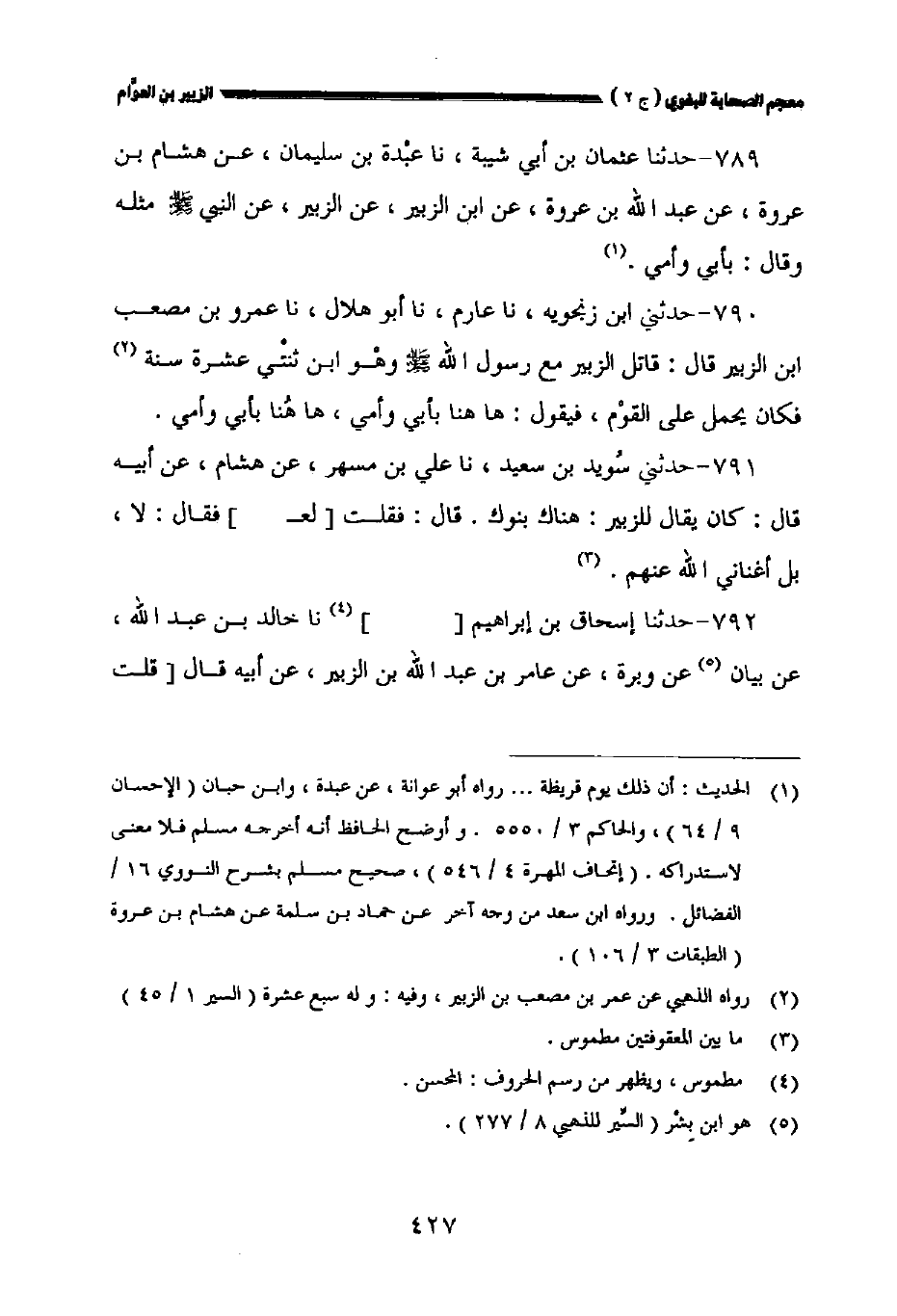 ٧٩٠ - حدثني ابن زنجويه نا عارم نا أبو هلال نا عمرو بن مصعب بن الزبير قال: قاتل الزبير مع رسول الله صلى الله عليه وسلم وهو ابن ثنتي عشرة سنة فكان يحمل على القوم فيقول: ها هنا بأبي وأمي ها هنا بأبي وأمي.