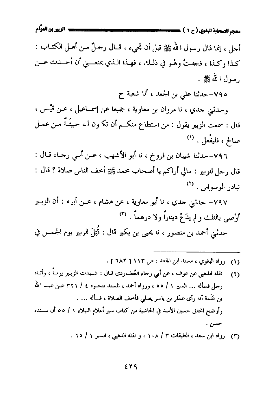 ٧٩٦ - حدثنا شيبان بن فروخ نا أبو الأشهب عن أبي رجاء قال: قال رجل للزبير: مالي أراكم ياأصحاب محمد صلى الله عليه وسلم أخف الناس صلاة؟ قال: نبادر الوسواس.