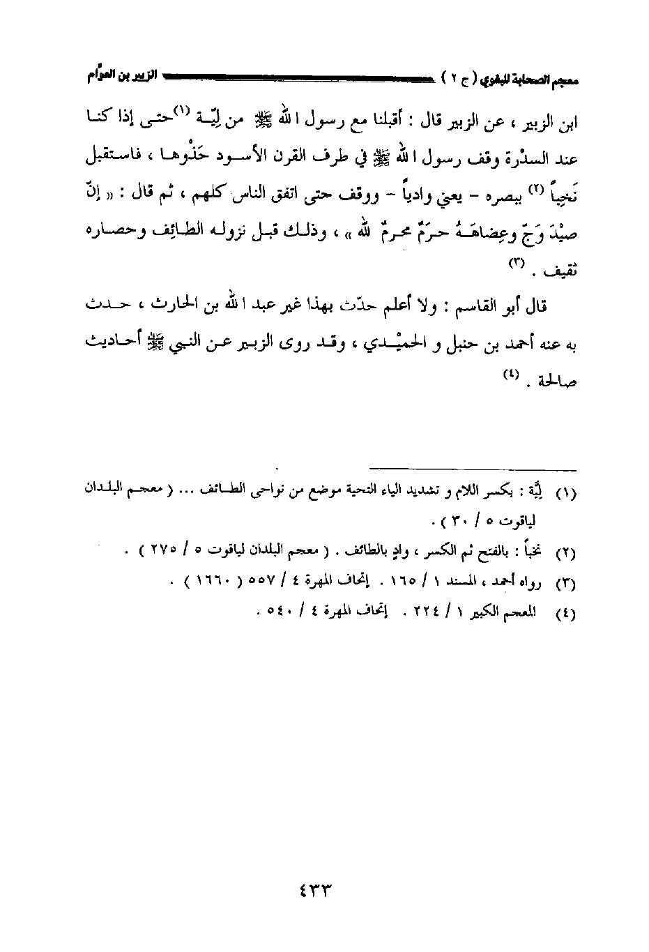 بن الزبير عن الزبير قال: أقبلنا مع رسول الله صلى الله عليه وسلم من لية حتى إذا كنا عند السدرة وقف رسول الله صلى الله عليه وسلم في طرف القرن الأسود حذوها فاستقبل نخبا ببصره - يعني واديا - ووقف حتى اتفق الناس كلهم ثم قال: " إن صيد وج وعضاهه حرم محرم الله " وذلك قبل نزوله الطائف وحصاره ثقيف.