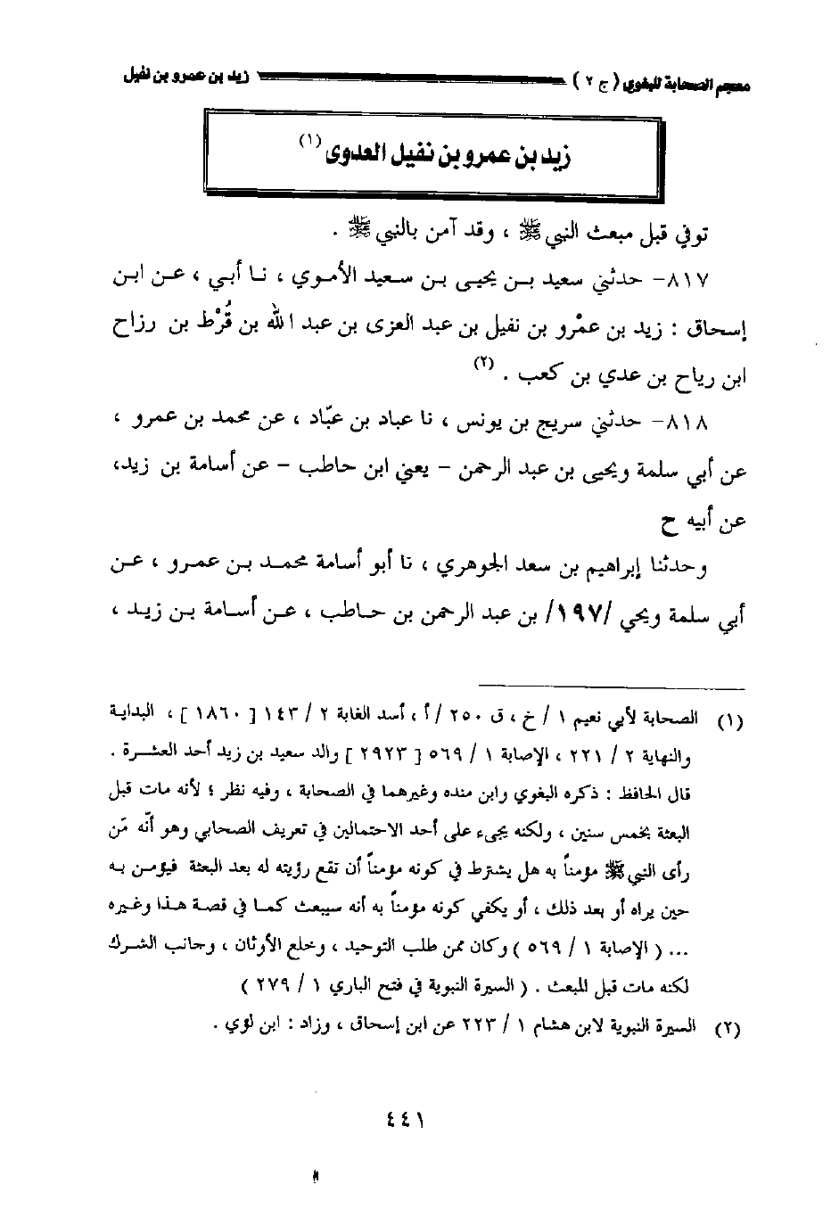 ٨١٧ - حدثني سعيد بن يحيى بن سعيد الأموي نا أبي عن ابن إسحاق: زيد بن عمرو بن نفيل بن عبد العزى بن عبد الله بن قرط بن رزاح بن رياح بن عدي بن كعب.