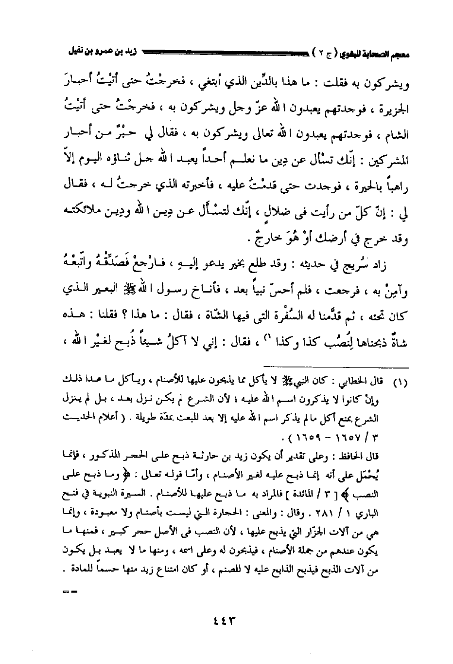 زاد سريج في حديثه: وقد طلع بخير يدعو إليه فارجع فصدقه واتبعه وآمن به فرجعت فلم أحس نبيا بعد فأناخ رسول الله صلى الله عليه وسلم البعير الذي كان تحته ثم قدمنا له السفرة التي فيها الشاة فقال: ما هذا؟ فقلنا: هذه شاة ذبحناها لنصب كذا وكذا، فقال: إني لا آكل شيئا ذبح لغير الله