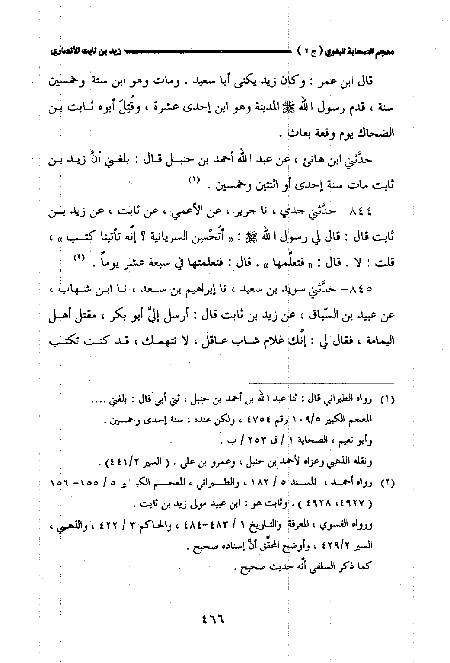 ٨٤٤ - حدثني جدي نا جرير عن الأعمى عن ثابت عن زيد بن ثابت قال: قال لي رسول الله صلى الله عليه وسلم: " أتحسن السريانية؟ إنه تأتينا كتب "، قلت: لا. قال: " فتعلمها ". قال: فتعلمتها في سبعة عشر يوما.