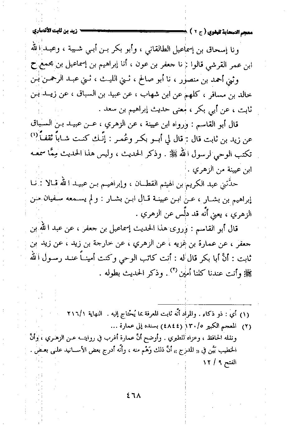 قال أبو القاسم: ورواه ابن عيينة عن الزهري عن عبيد بن السباق عن زيد بن ثابت قال: قال لي أبو بكر وعمر: إنك كنت شابا ثقفا تكتب الوحي لرسول الله صلى الله عليه وسلم. وذكر الحديث وليس هذا الحديث مما سمعه ابن عيينة من الزهري.