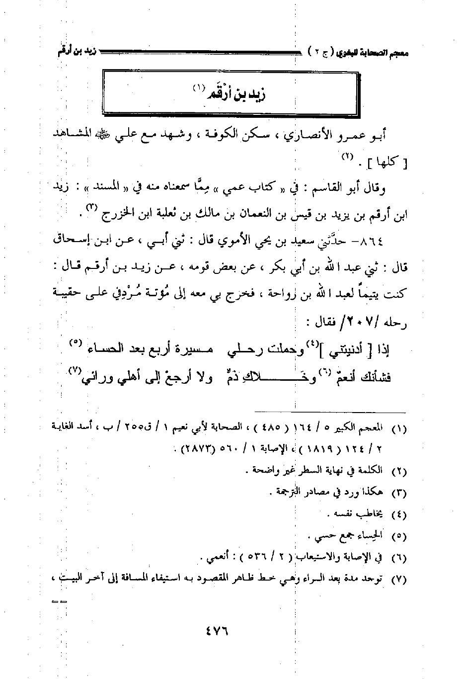 ٨٦٤ - حدثني سعيد بن يحيى الأموي قال: حدثني أبي عن ابن إسحاق قال: حدثني عبد الله بن أبي بكر عن بعض قومه عن زيد بن أرقم قال: كنت يتيما لعبد الله بن رواحة فخرج بي معه إلى مؤتة مردفي على حقيبة رحله فقال: