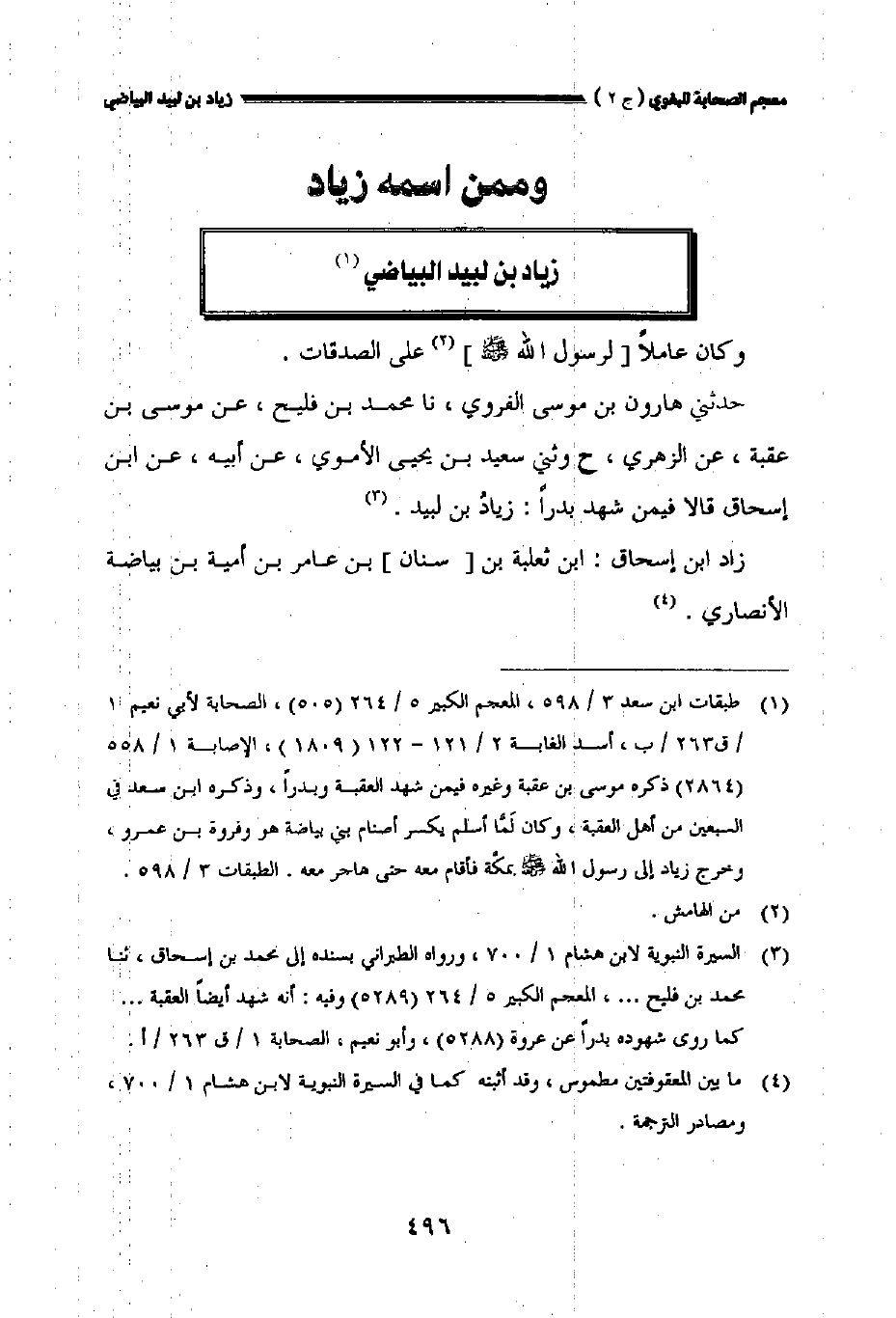 حدثني هارون بن موسى الفروي نا محمد بن فليح عن موسى بن عقبة عن الزهري ح وثني سعيد بن يحيى الأموي عن أبيه عن ابن إسحاق قالا فيمن شهد بدرا: زياد بن لبيد.