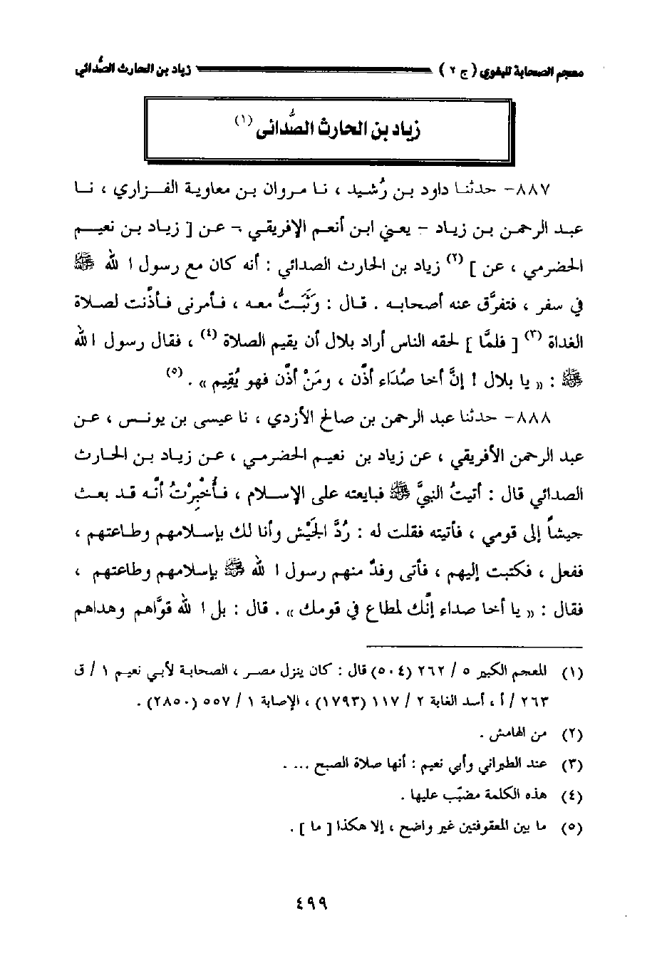 ٨٨٨ - حدثنا عبد الرحمن بن صالح الأزدي نا عيسى بن يونس عن عبد الرحمن الأفريقي عن زياد بن نعيم الحضرمي عن زياد بن الحارث الصدائي قال: أتيت النبي صلى الله عليه وسلم فبايعته على الإسلام فأخبرت أنه قد بعث جيشا إلى قومي فأتيته فقلت له: رد الجيش وأنا لك بإسلامهم وطاعتهم ففعل فكتبت إليهم فأتى وفد منهم رسول الله صلى الله عليه وسلم بإسلامهم وطاعتهم فقال: " ياأخا صداء إنك لمطاع في قومك ". قال: بل الله قواهم وهداهم