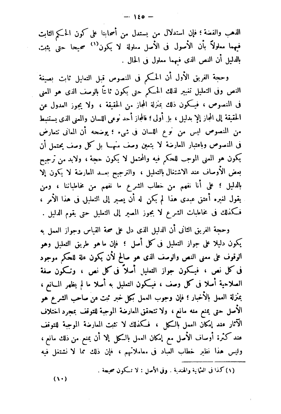 الذَّهَب وَالْفِضَّة فَإِن اسْتِدْلَال من يسْتَدلّ من أَصْحَابنَا على كَون الحكم الثَّابِت فيهمَا معلولا بِأَن الْأُصُول فِي الأَصْل معلولة لَا يكون صَحِيحا حَتَّى يثبت بِالدَّلِيلِ أَن النَّص الَّذِي فيهمَا مَعْلُول فِي الْحَال