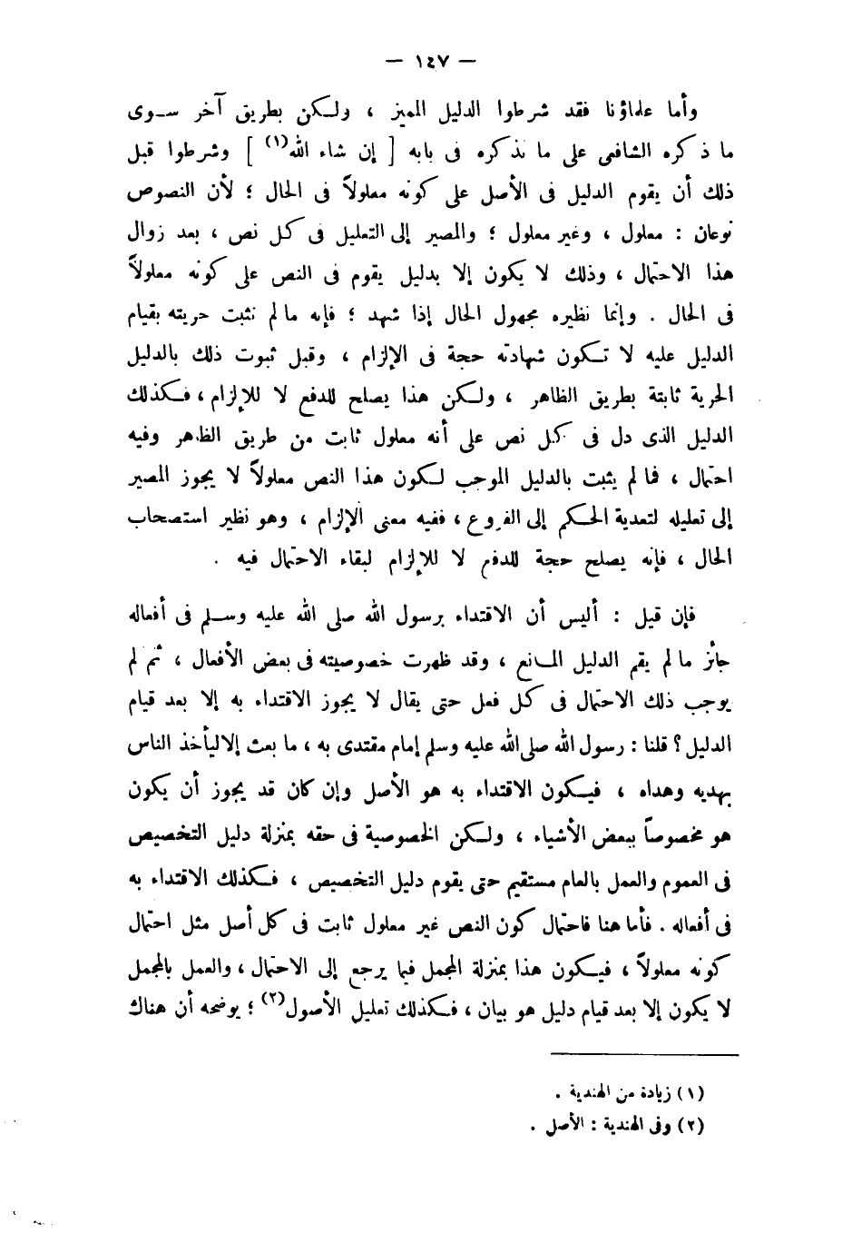 وَأما عُلَمَاؤُنَا فقد شرطُوا الدَّلِيل الْمُمَيز وَلَكِن بطرِيق آخر سوى مَا ذكره الشَّافِعِي على مَا نذكرهُ فِي بَابه (إِن شَاءَ الله) وشرطوا قبل ذَلِك أَن يقوم الدَّلِيل فِي الأَصْل على كَونه معلولا فِي الْحَال لِأَن النُّصُوص نَوْعَانِ مَعْلُول وَغير مَعْلُول والمصير إِلَى التَّعْلِيل فِي كل نَص بعد زَوَال هَذَا الِاحْتِمَال وَذَلِكَ لَا يكون إِلَّا بِدَلِيل يقوم فِي النَّص على كَونه معلولا فِي الْحَال