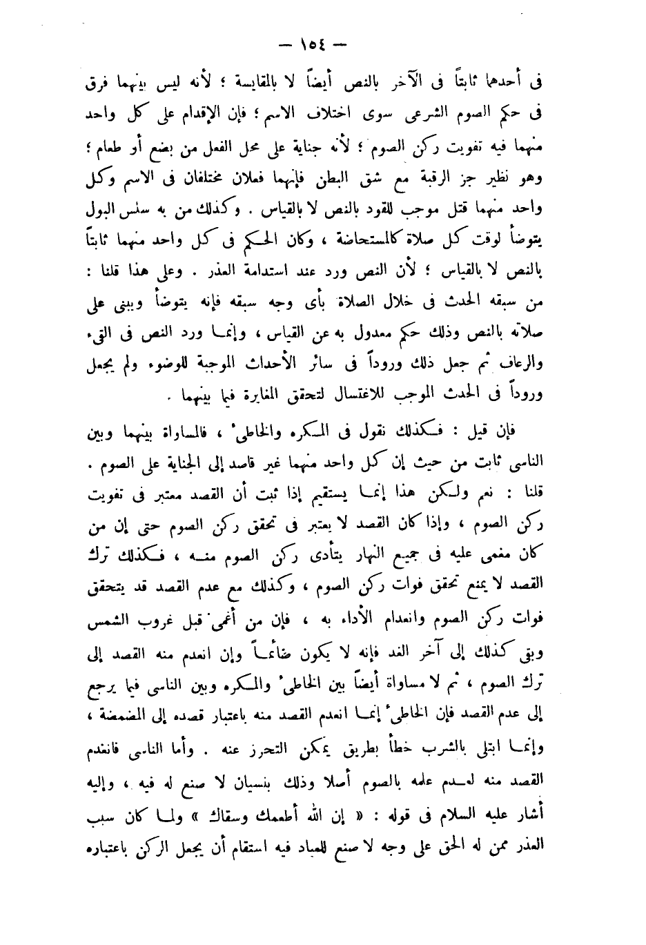 فِي أَحدهمَا ثَابتا فِي الآخر بِالنَّصِّ أَيْضا لَا بالمقايس لِأَنَّهُ لَيْسَ بَينهمَا فرق فِي حكم الصَّوْم الشَّرْعِيّ سوى اخْتِلَاف الِاسْم فَإِن الْإِقْدَام على كل وَاحِد مِنْهُمَا فِيهِ تَفْوِيت ركن الصَّوْم لِأَنَّهُ جِنَايَة على مَحل الْفِعْل من بضع أَو طَعَام وَهُوَ نَظِير جُزْء الرَّقَبَة مَعَ شقّ الْبَطن فَإِنَّهُمَا فعلان مُخْتَلِفَانِ فِي الِاسْم وكل وَاحِد مِنْهُمَا قتل مُوجب للقود بِالنَّصِّ لَا بِالْقِيَاسِ