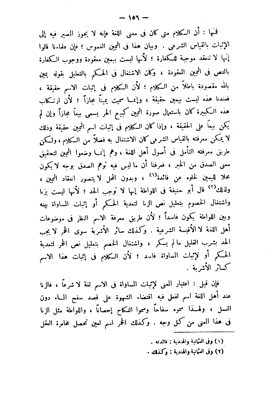 وَبَيَان هَذَا فِي الْيَمين الْغمُوس فَإِن علماءنا قَالُوا إِنَّهَا لَا تَنْعَقِد مُوجبَة لِلْكَفَّارَةِ لِأَنَّهَا لَيست بِيَمِين معقودة وَوُجُوب الْكَفَّارَة بِالنَّصِّ فِي الْيَمين المعقودة وَكَانَ الِاشْتِغَال فِي الحكم بِالتَّعْلِيلِ بقوله يَمِين بِاللَّه مَقْصُودَة بَاطِلا من الْكَلَام لِأَن الْكَلَام فِي إِثْبَات الِاسْم حَقِيقَة فعندنا هَذِه لَيست بِيَمِين حَقِيقَة وَإِنَّمَا سميت يَمِينا مجَازًا لِأَن ارْتِكَاب هَذِه الْكَبِيرَة كَانَ بِاسْتِعْمَال صُورَة الْيَمين كَبيع الْحر يُسمى بيعا مجَازًا وَإِن لم يكن بيعا على الْحَقِيقَة وَإِذا كَانَ الْكَلَام فِي إِثْبَات اسْم الْيَمين حَقِيقَة وَذَلِكَ لَا يُمكن مَعْرفَته بِالْقِيَاسِ الشَّرْعِيّ كَانَ الِاشْتِغَال بِهِ فضلا من الْكَلَام وَلَكِن طَرِيق مَعْرفَته التَّأَمُّل فِي أصُول أهل اللُّغَة وهم إِنَّمَا وضعُوا الْيَمين لتحقيق معنى الصدْق من الْخَبَر فَعرفنَا أَن مَا لَيْسَ فِيهِ توهم الصدْق بِوَجْه لَا يكون محلا للْيَمِين لخلوه عَن فَائِدَة وَبِدُون الْمحل لَا يتَصَوَّر انْعِقَاد الْيَمين وَلذَلِك قَالَ أَبُو حنيفَة فِي اللواطة إِنَّهَا لَا توجب الْحَد لِأَنَّهَا لَيست بزنا واشتغال الْخُصُوم بتعليل نَص الزِّنَا لتعدية الحكم أَو إِثْبَات الْمُسَاوَاة بَينه وَبَين اللواطة يكون فَاسِدا لِأَن طَرِيق معرفَة الِاسْم النّظر فِي مَوْضُوعَات أهل اللُّغَة لَا الأقيسة الشَّرْعِيَّة