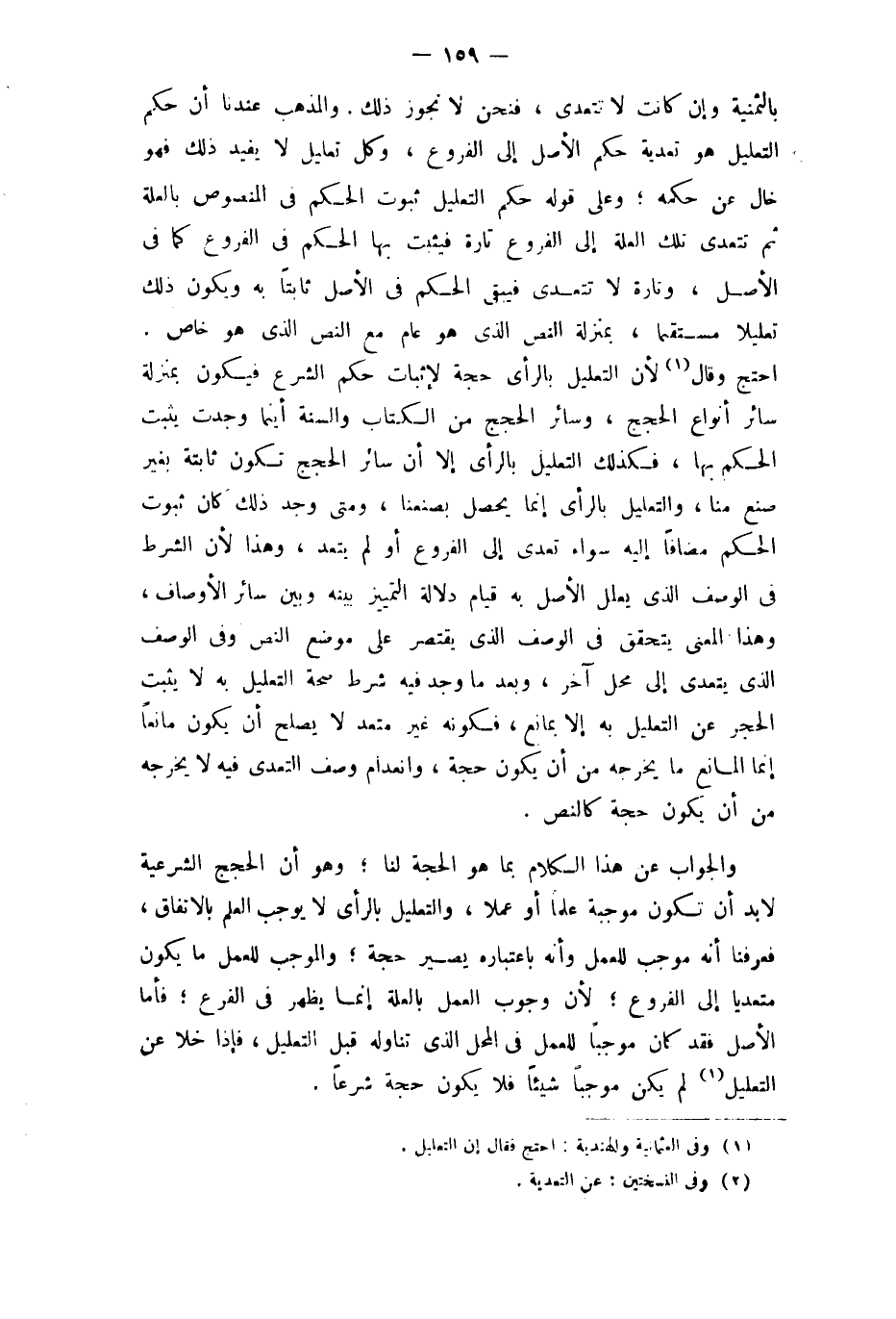 وَالْجَوَاب عَن هَذَا الْكَلَام بِمَا هُوَ الْحجَّة لنا وَهُوَ أَن الْحجَج الشَّرْعِيَّة لَا بُد أَن تكون مُوجبَة علما أَو عملا وَالتَّعْلِيل بِالرَّأْيِ لَا يُوجب الْعلم بالِاتِّفَاقِ فَعرفنَا أَنه مُوجب للْعَمَل وَأَنه بِاعْتِبَارِهِ يصير حجَّة والموجب للْعَمَل مَا يكون مُتَعَدِّيا إِلَى الْفُرُوع لِأَن وجوب الْعَمَل بِالْعِلَّةِ إِنَّمَا يظْهر فِي الْفَرْع فَأَما الأَصْل فقد كَانَ مُوجبا للْعَمَل فِي الْمحل الَّذِي تنَاوله قبل التَّعْلِيل فَإِذا خلا عَن التَّعْلِيل لم يكن مُوجبا شَيْئا فَلَا يكون حجَّة شرعا